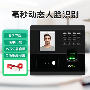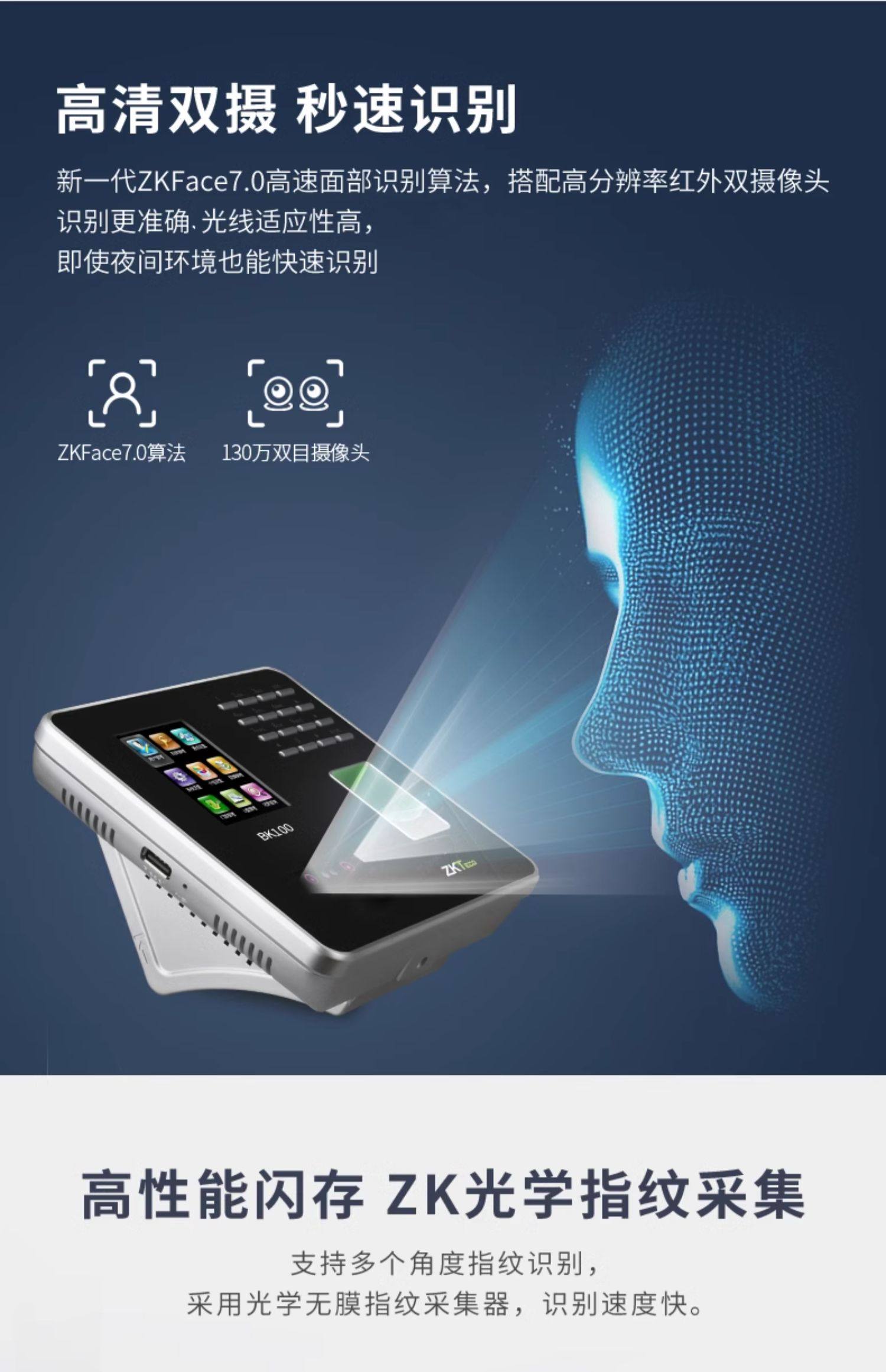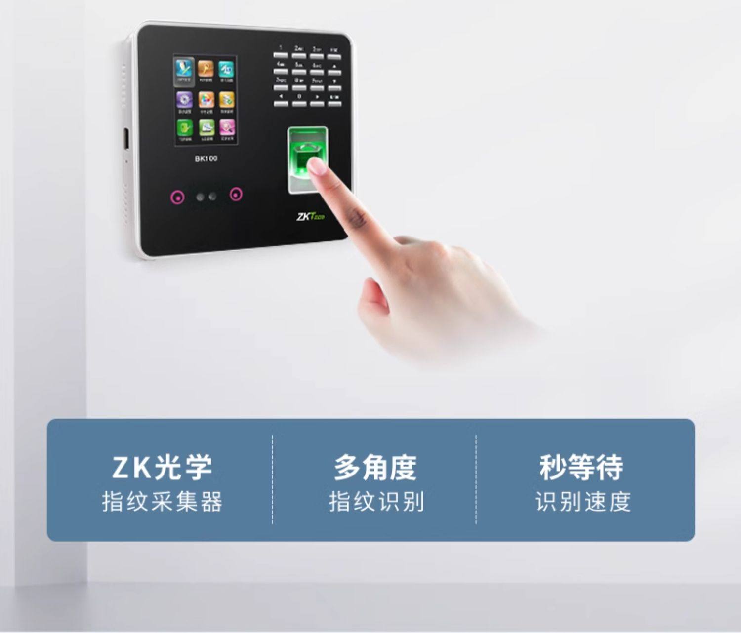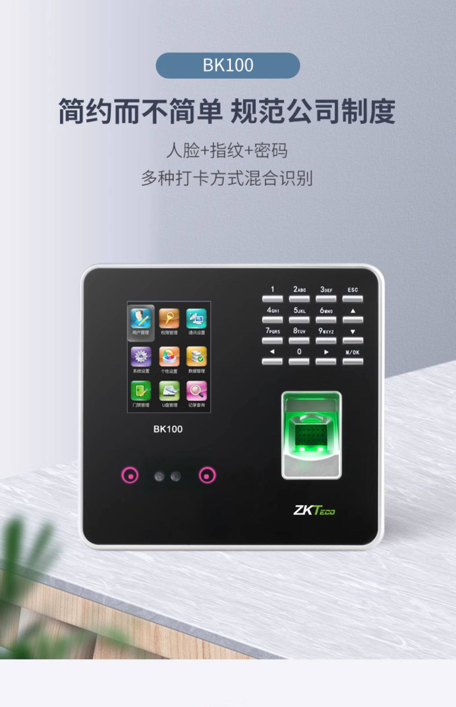 【送U盘】ZKTeco熵基科技BK100pro人脸识别考勤机指纹式签到机公司员工刷脸打卡机面部识别工厂上下班打卡器
