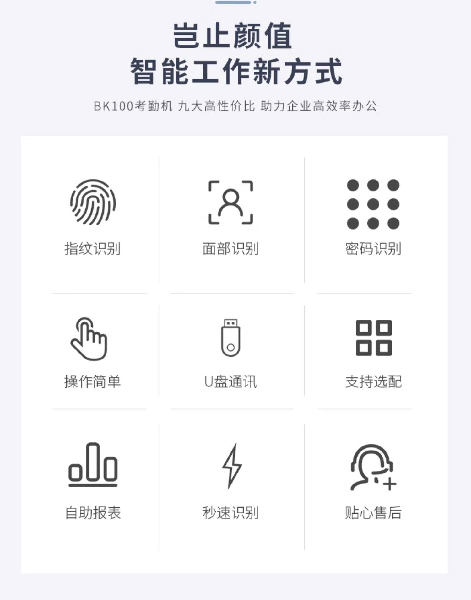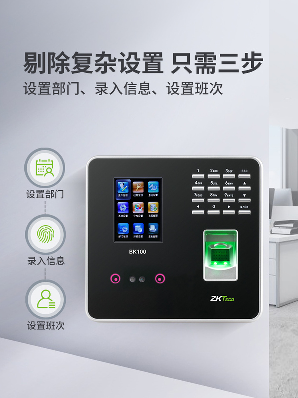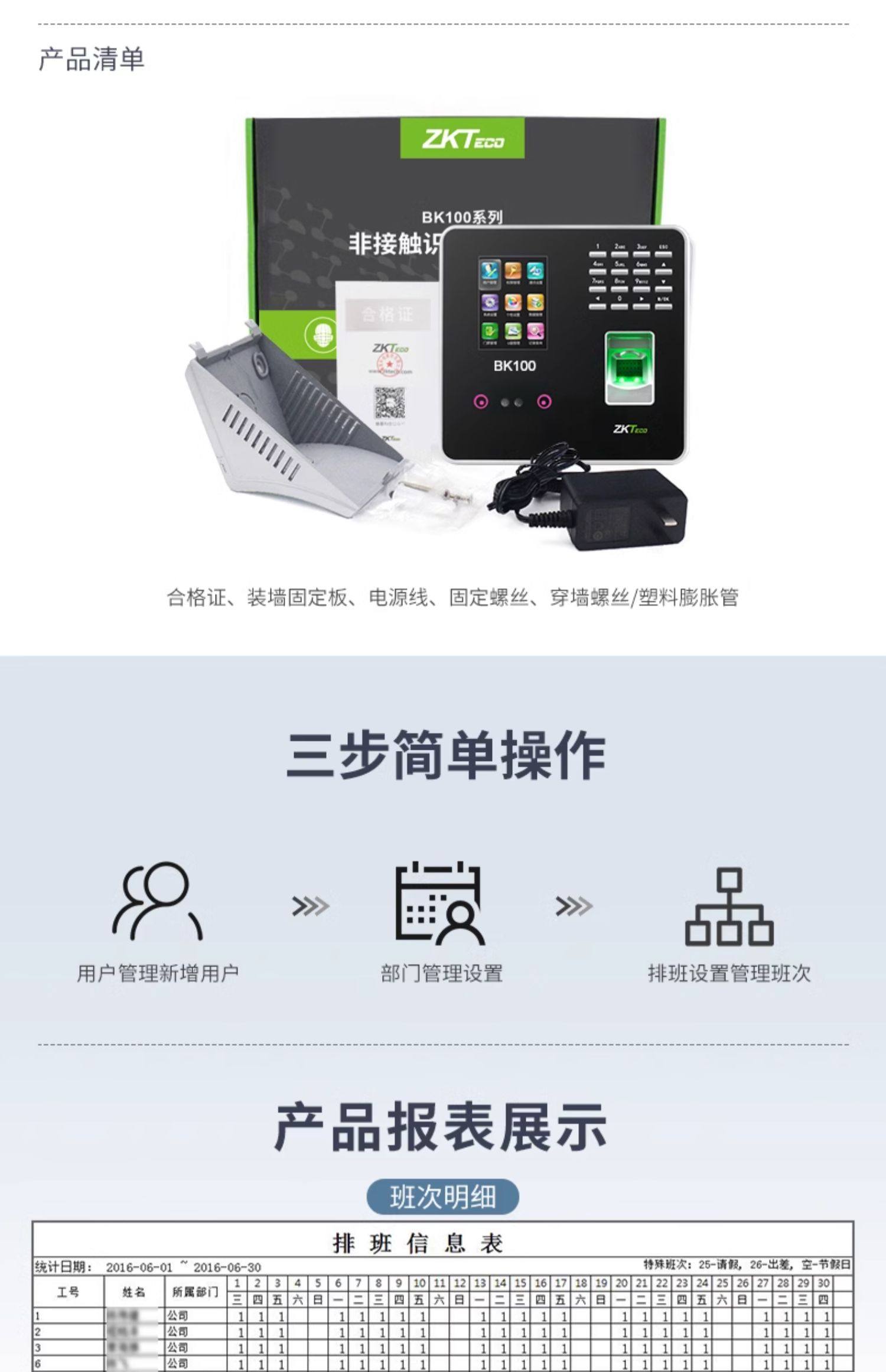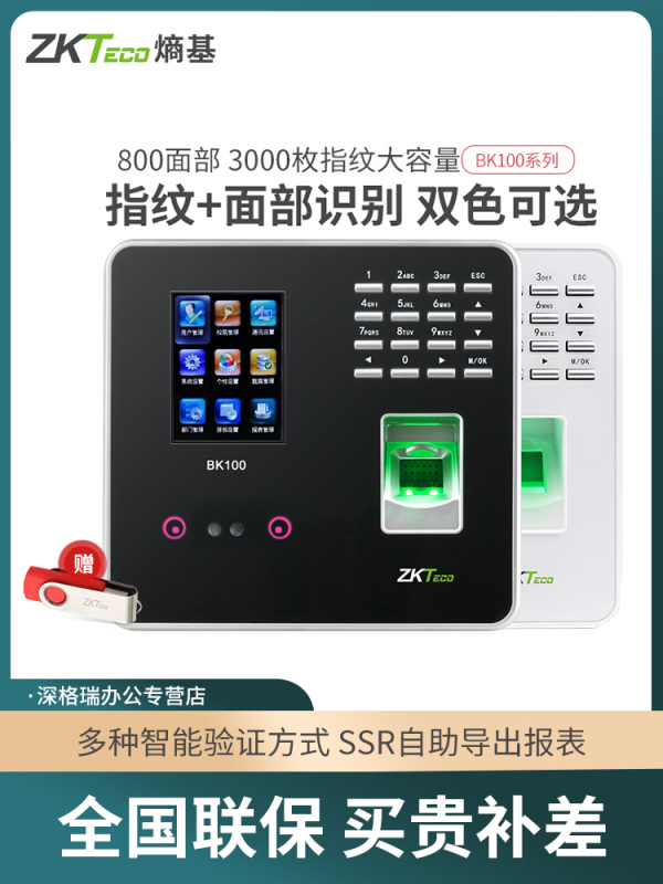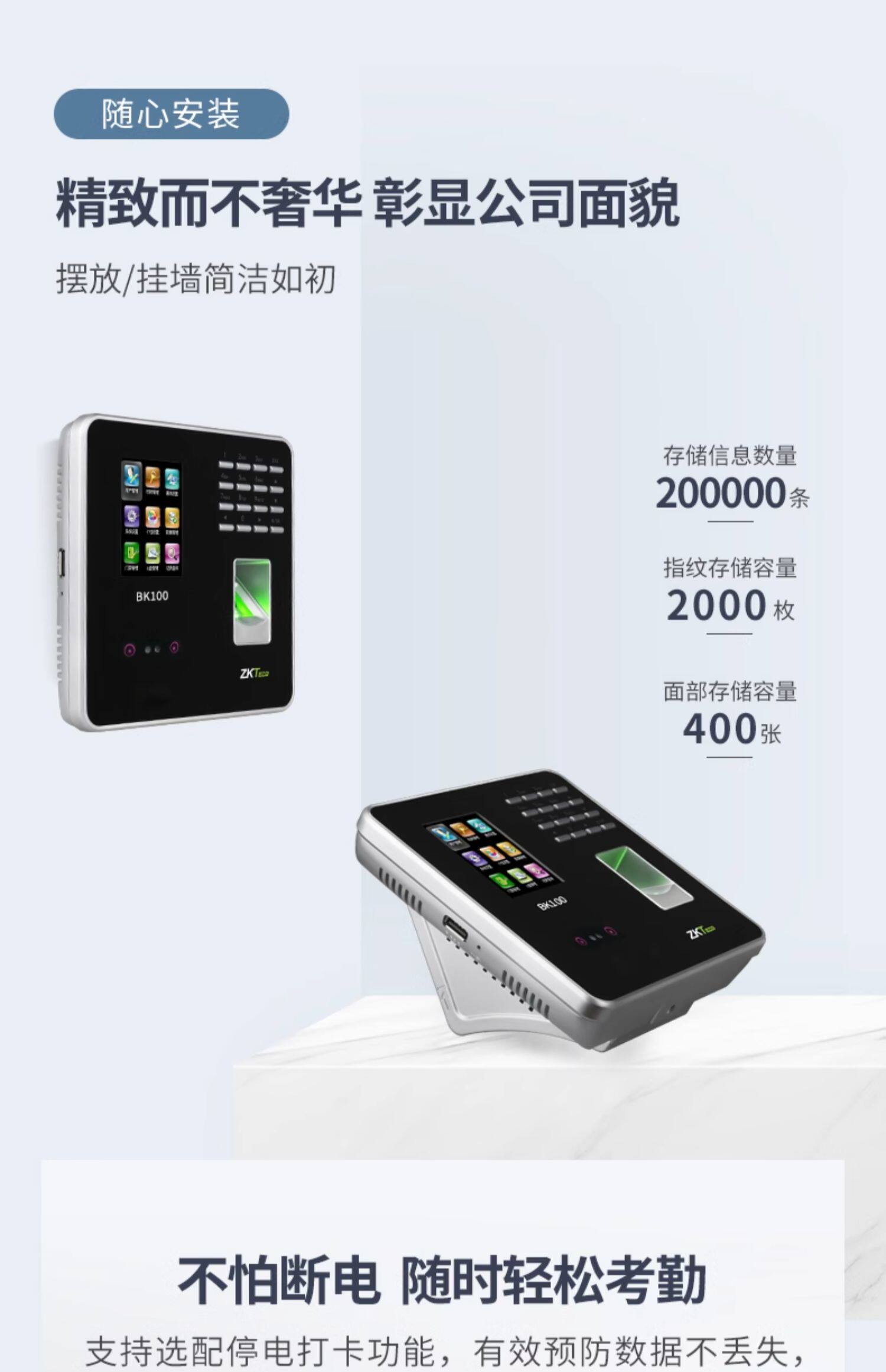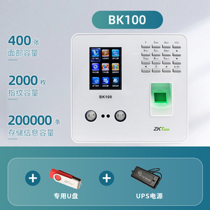 商品名称:【送U盘】ZKTeco熵基科技BK100pro人脸识别考勤机指纹式签到机公司员工刷脸打卡机面部识别工厂上下班打卡器