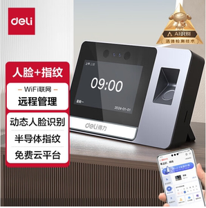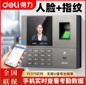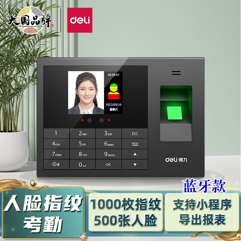 新款得力指纹面部混合识别考勤机人脸打卡机远程签到机蓝牙导出