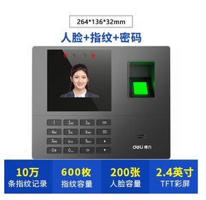 商品名称:新款得力指纹面部混合识别考勤机人脸打卡机远程签到机蓝牙导出
