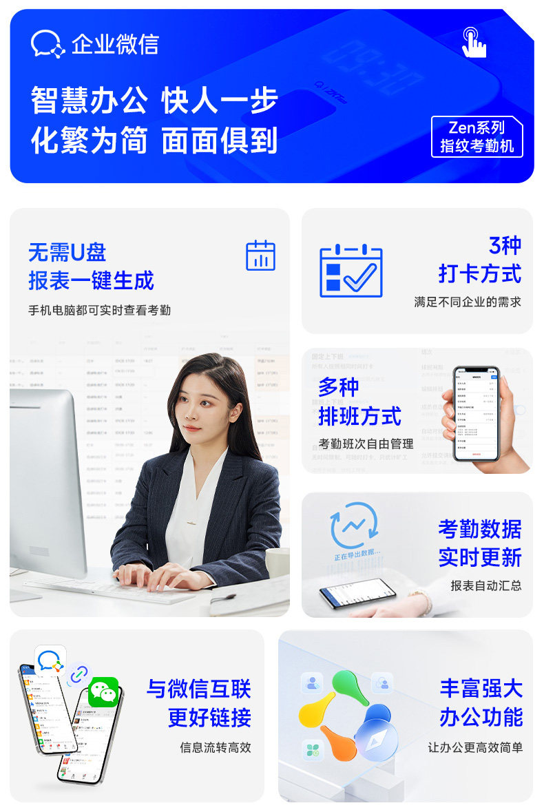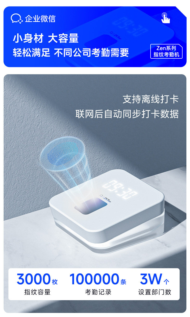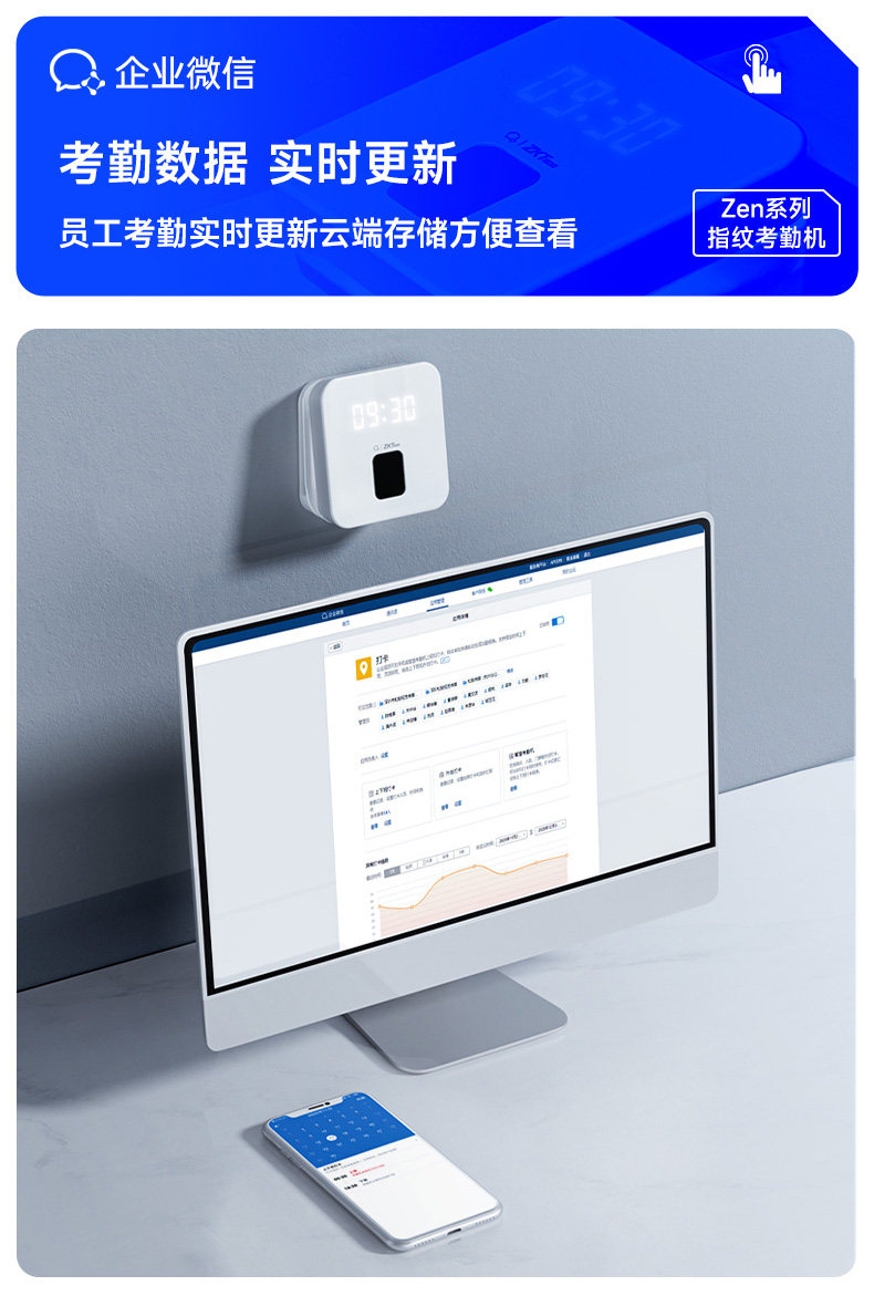 商品名称:企业微信旗舰】指纹智能考勤打卡机签到手指办公室员工上班打卡考勤机人脸识别考勒机得力熵基中控zkteco刷脸
