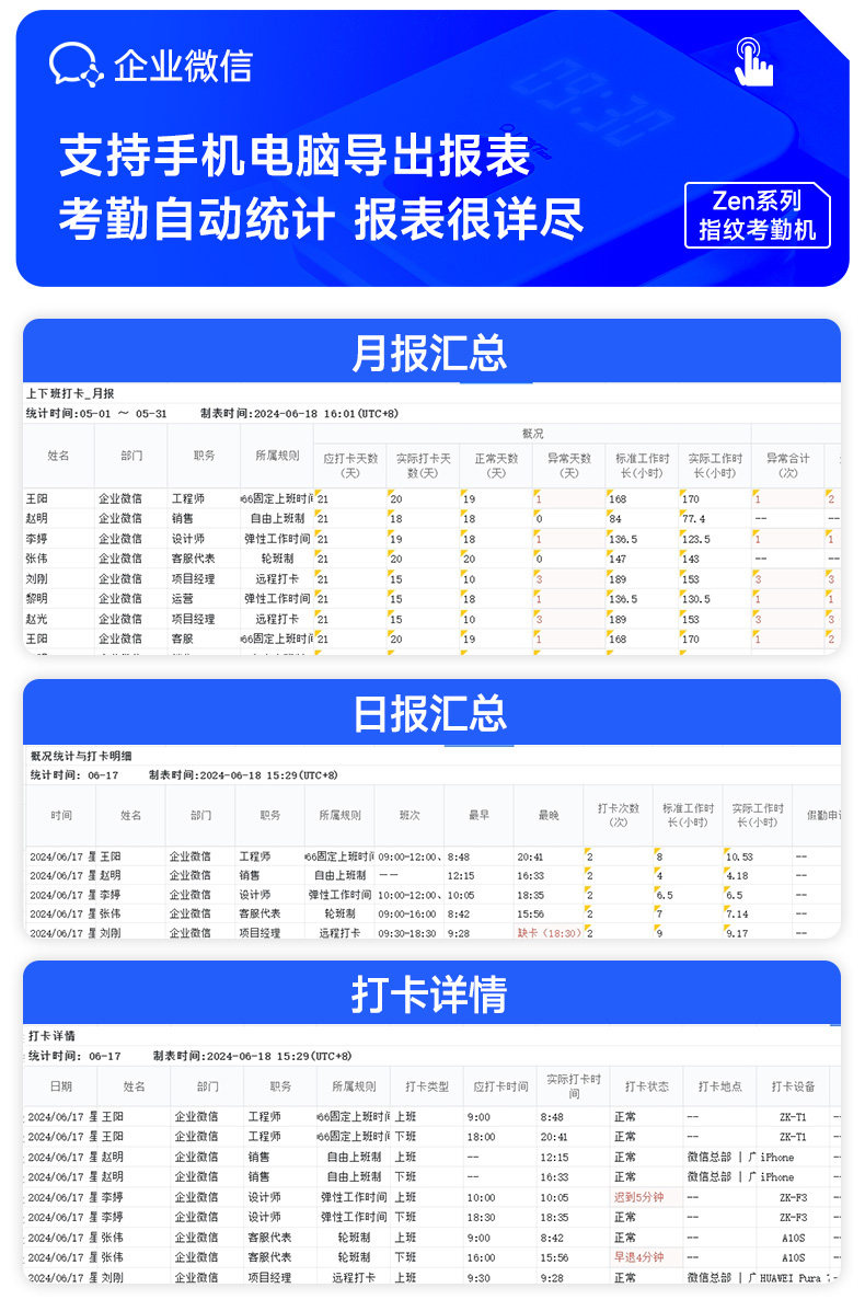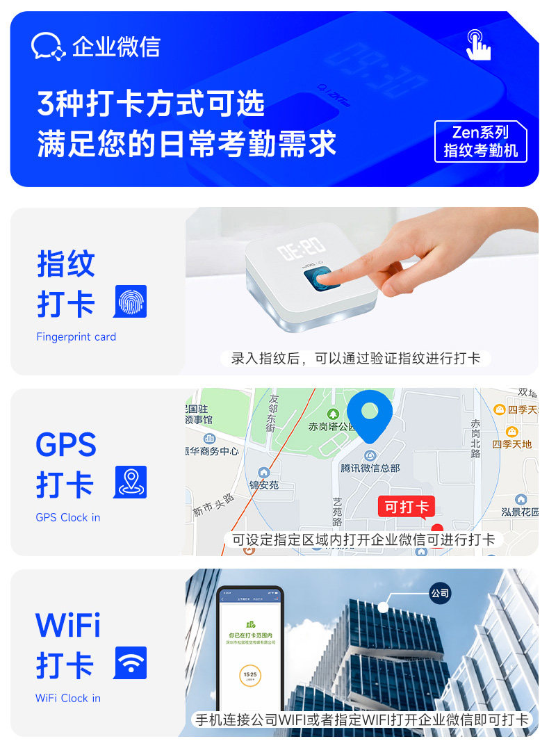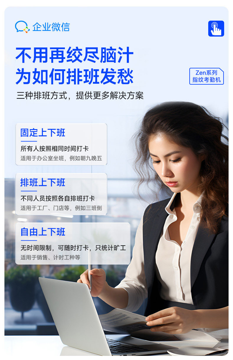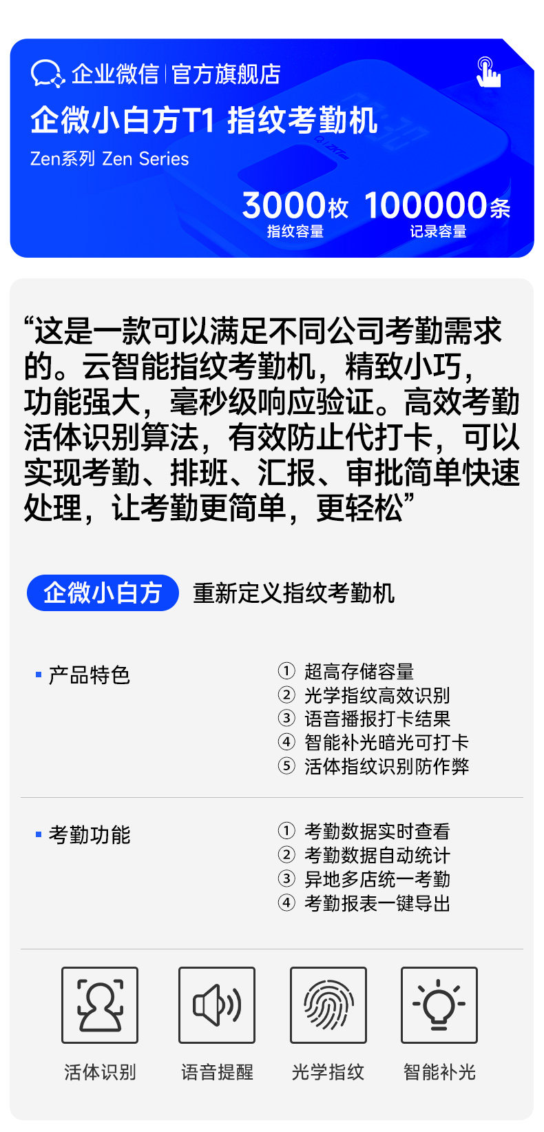 商品名称:企业微信旗舰】指纹智能考勤打卡机签到手指办公室员工上班打卡考勤机人脸识别考勒机得力熵基中控zkteco刷脸