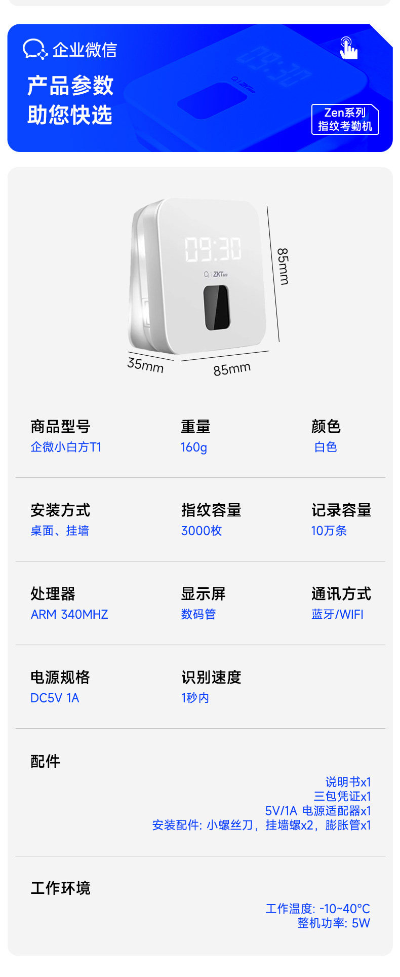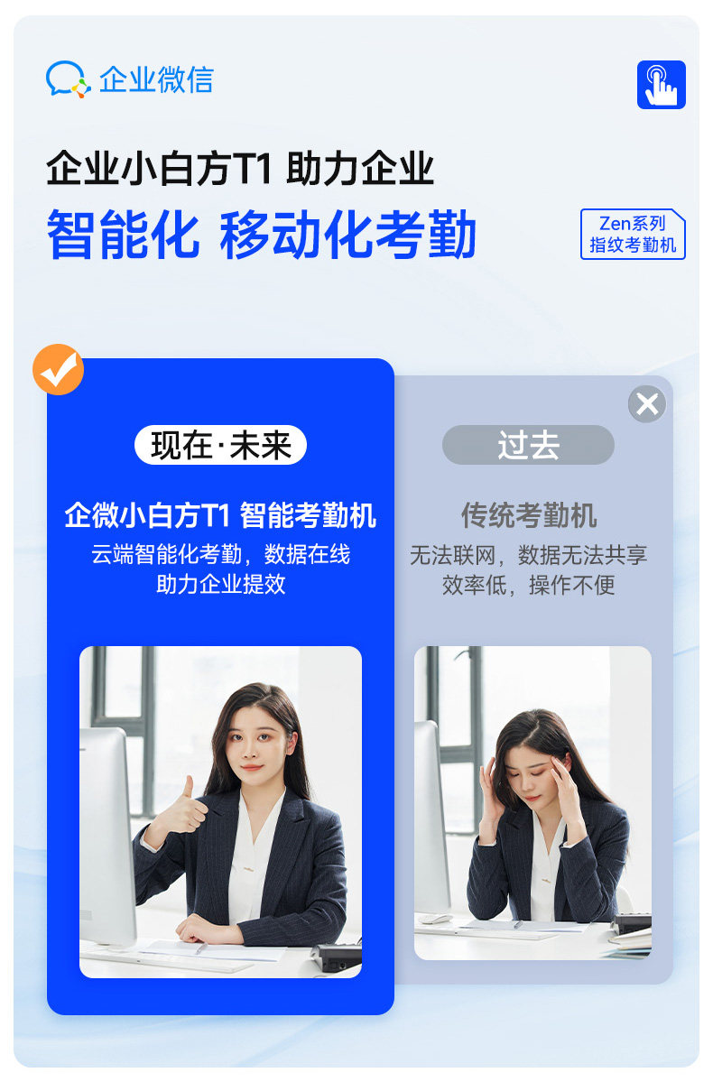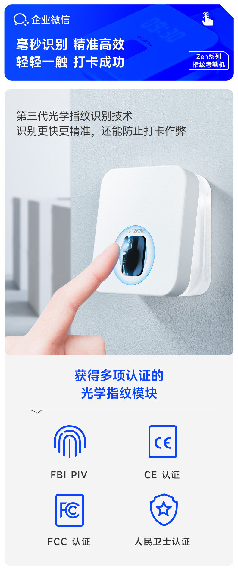 热销爆款【指纹识别】云考勤机小白方ZK-T1