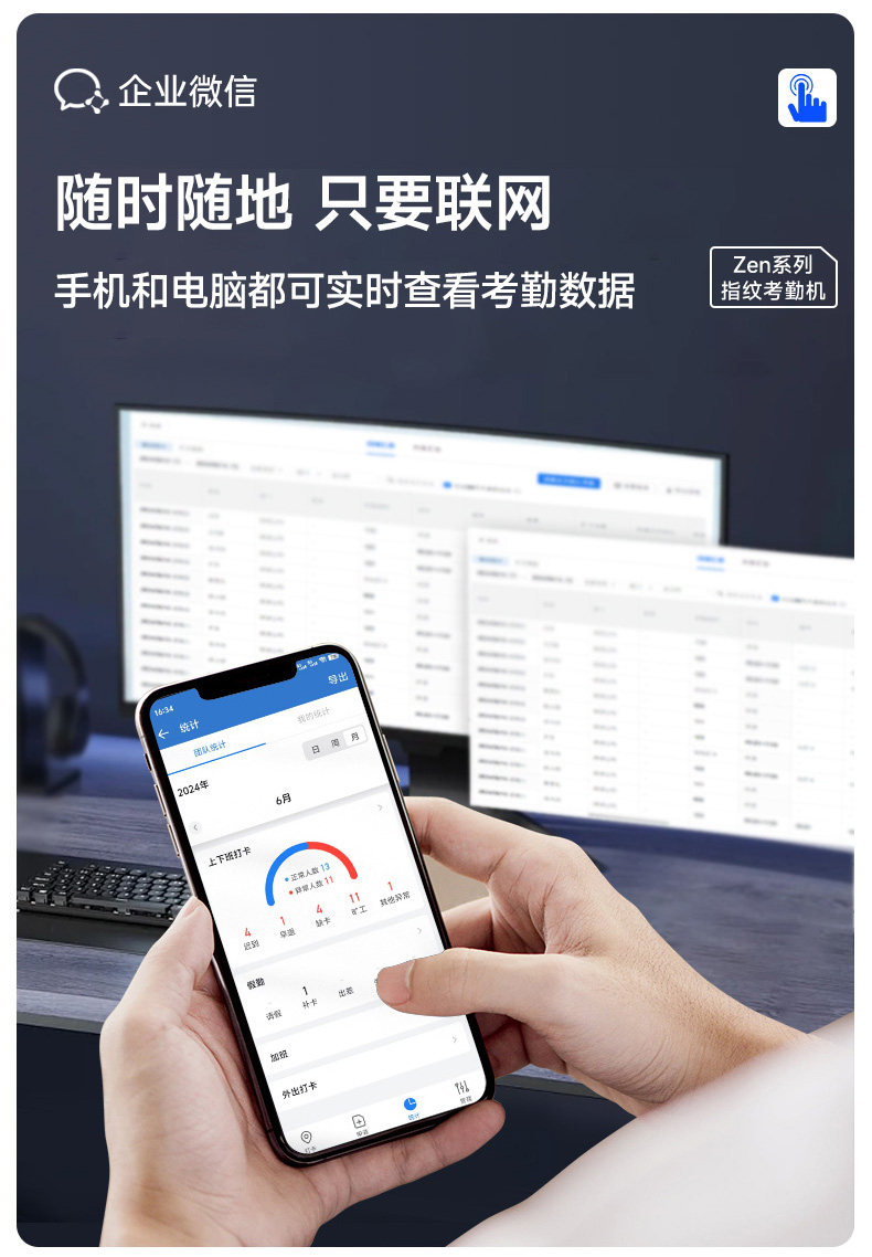 企业微信旗舰】指纹智能考勤打卡机签到手指办公室员工上班打卡考勤机人脸识别考勒机得力熵基中控zkteco刷脸