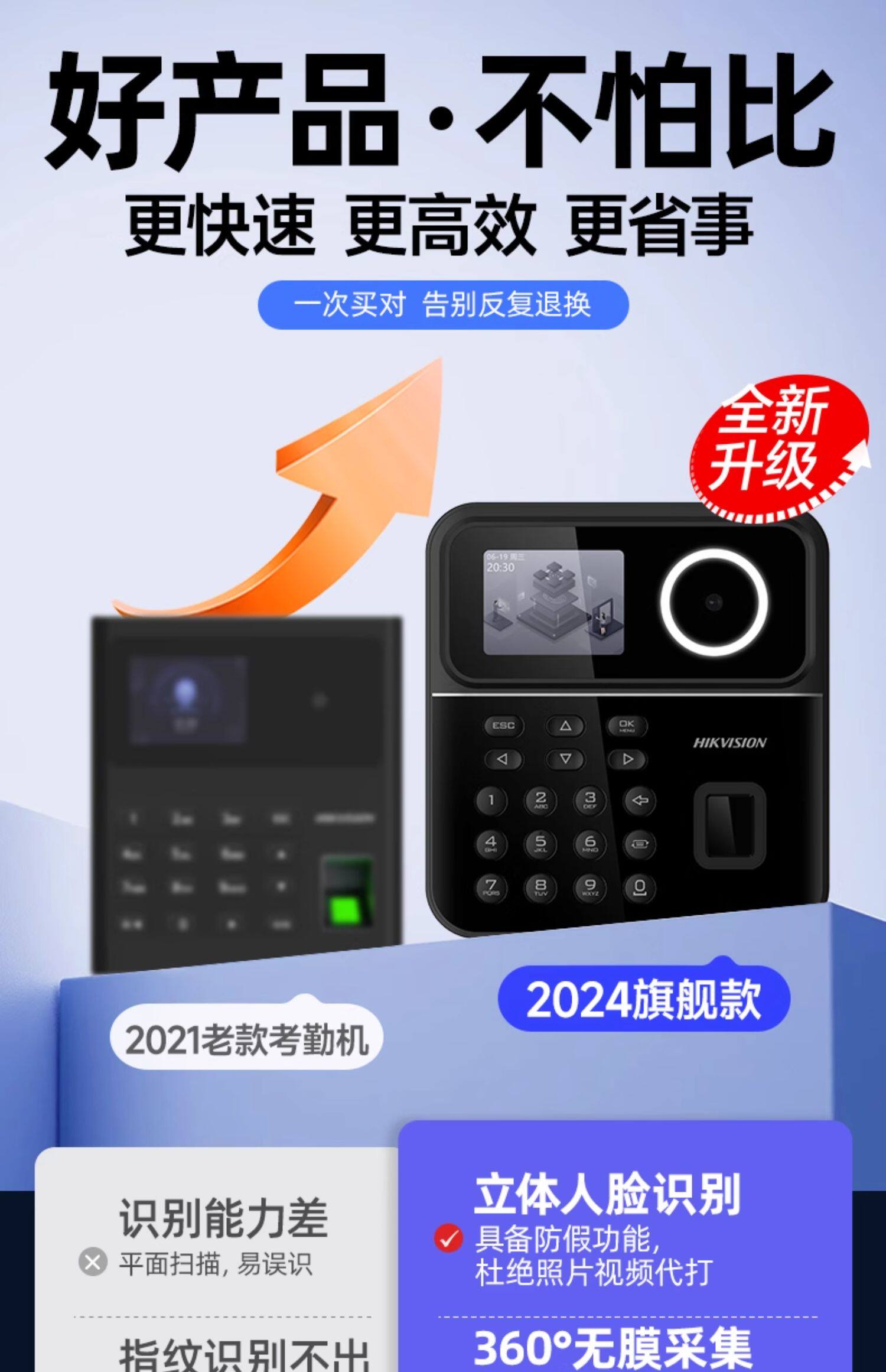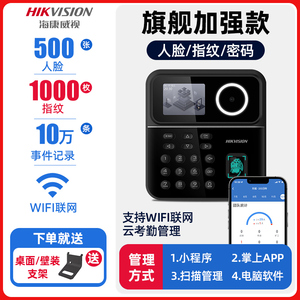 海康威视员工打卡考勤机智能人脸识别指纹打卡机工地上下班刷脸签到公司企业wifi联网刷卡器多功能面部识别