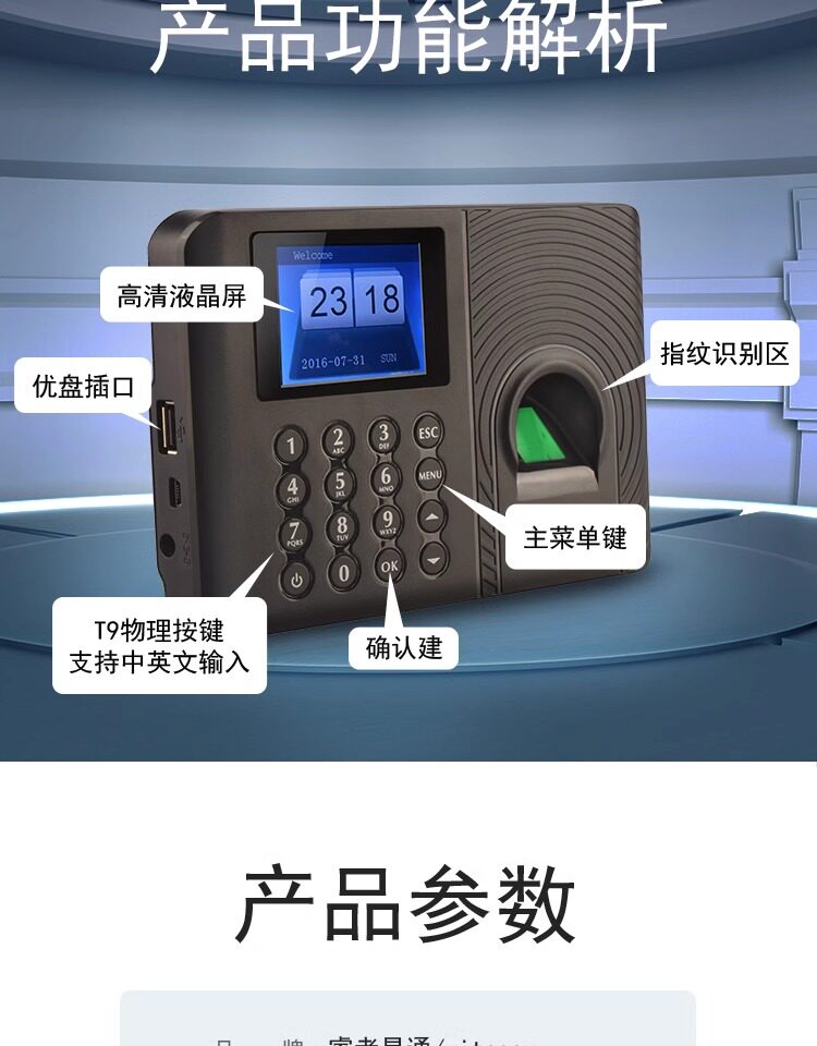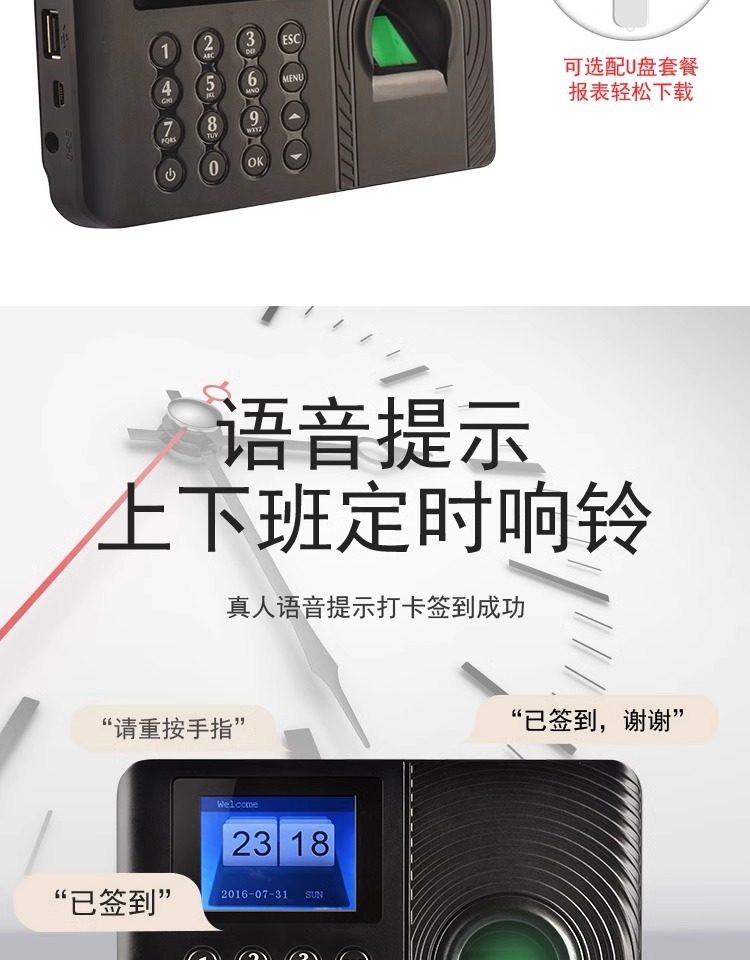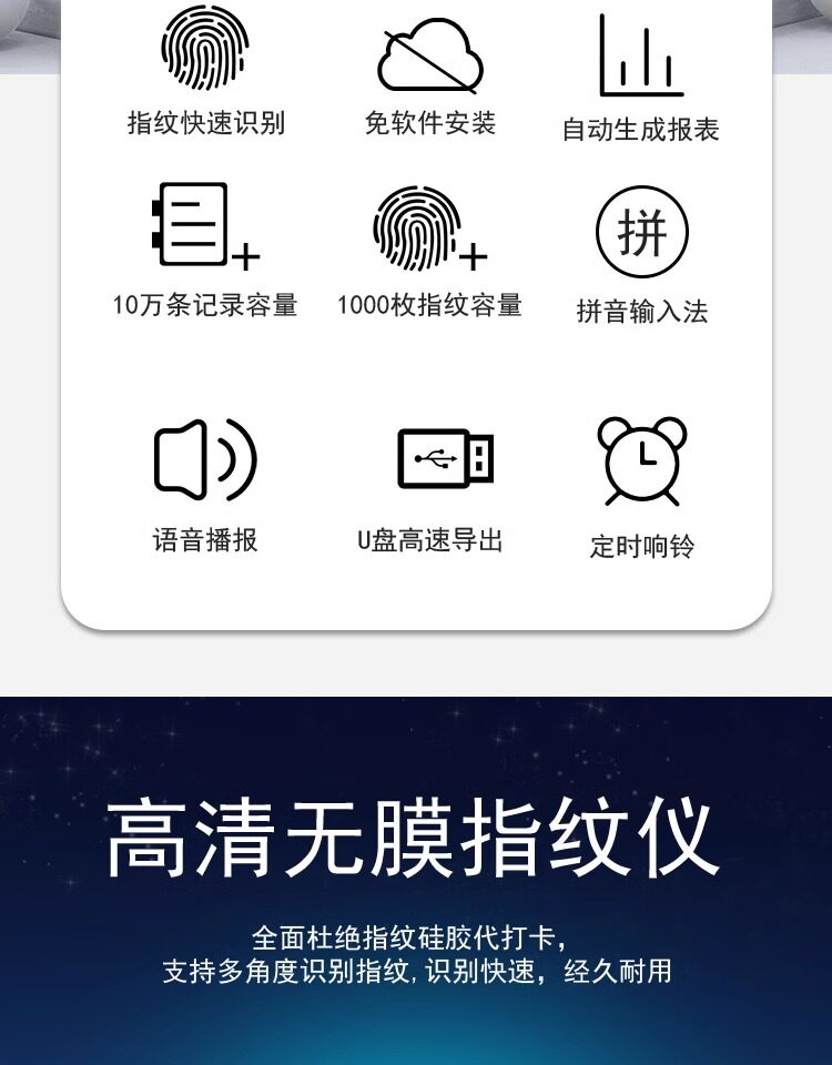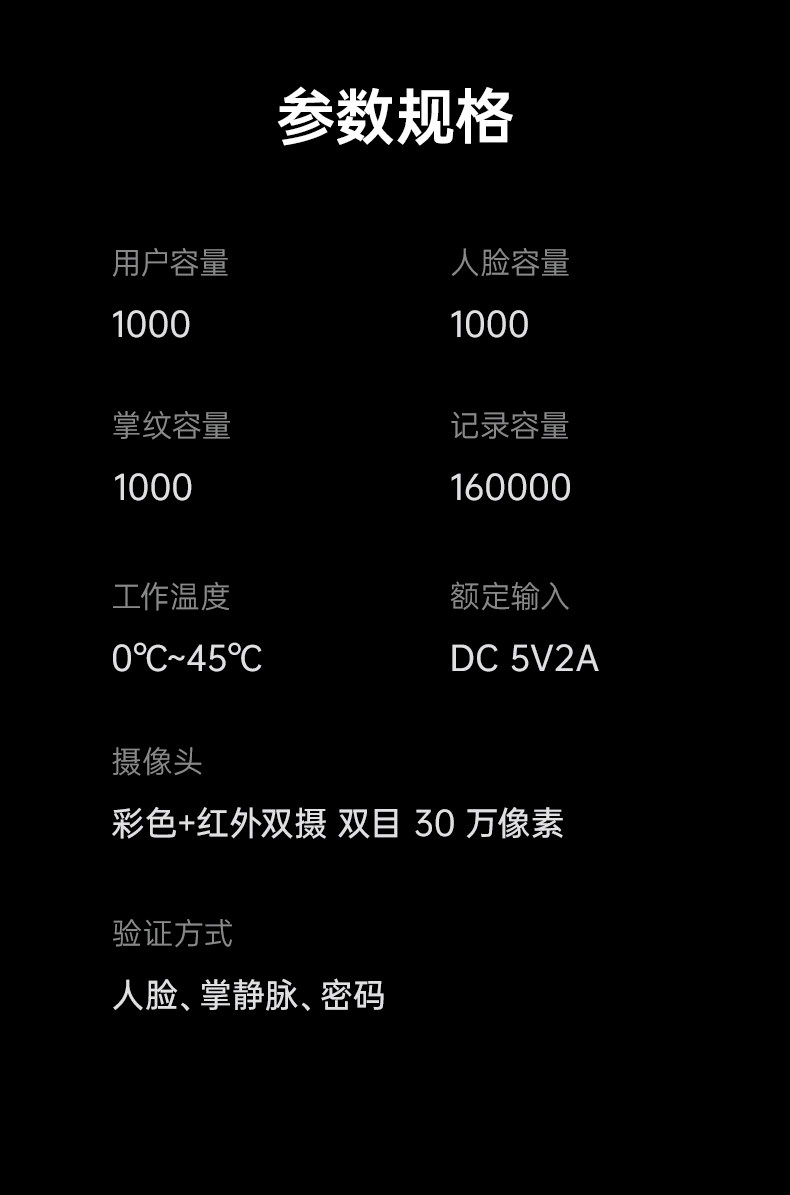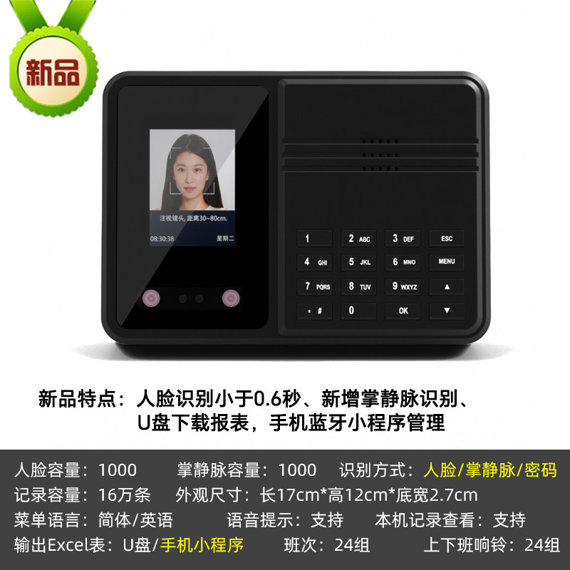 人脸款(300张)+指纹(3000枚)+考勤U盘(1G)