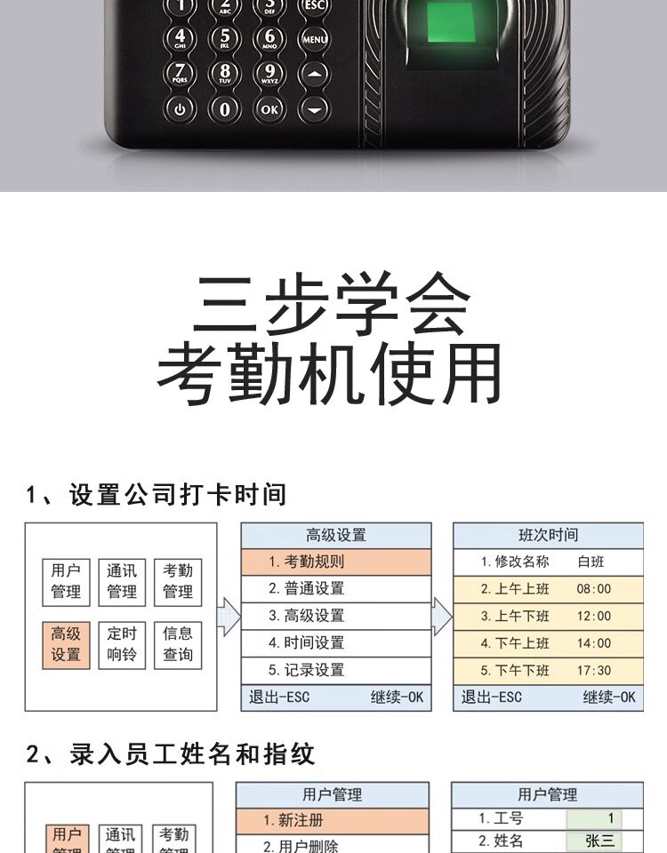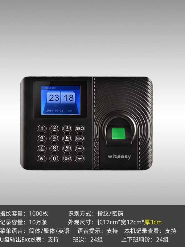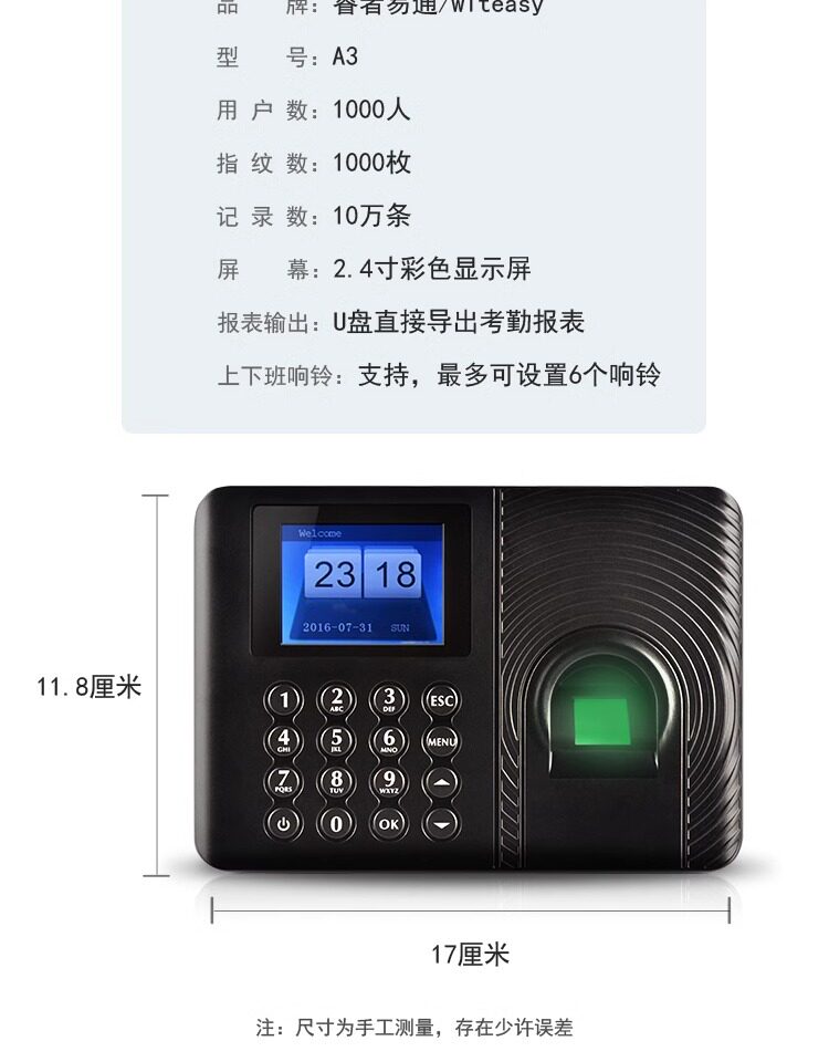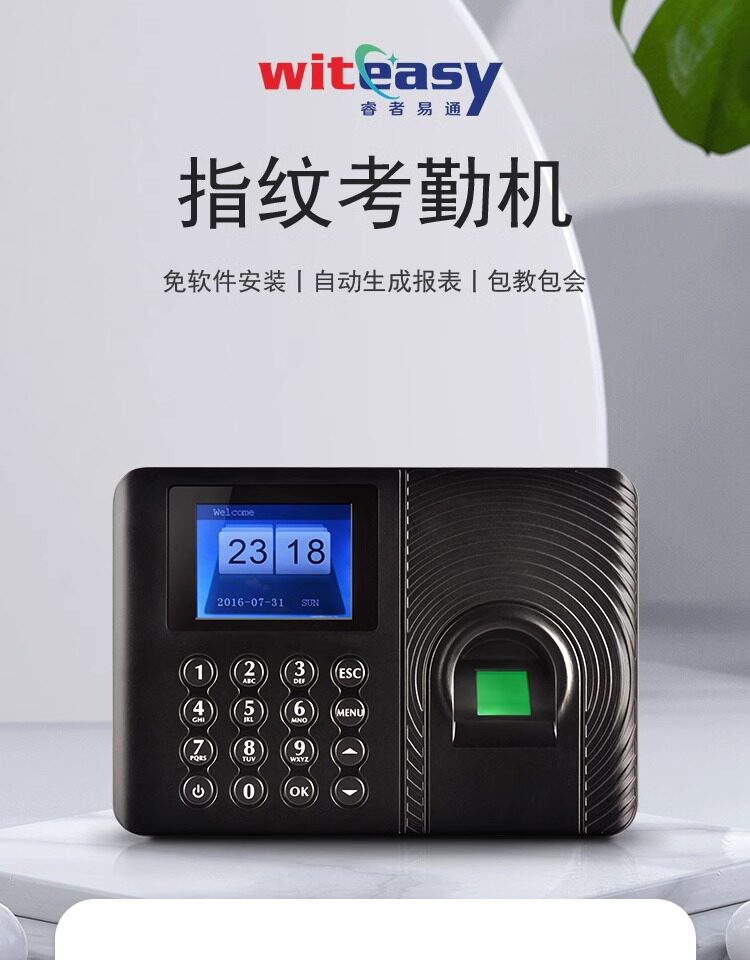 商品名称:睿者易通指纹打卡机员工上班指纹密码考勤机指纹机指纹式签到机免安装无需软件U盘直输报表大容量1000用户