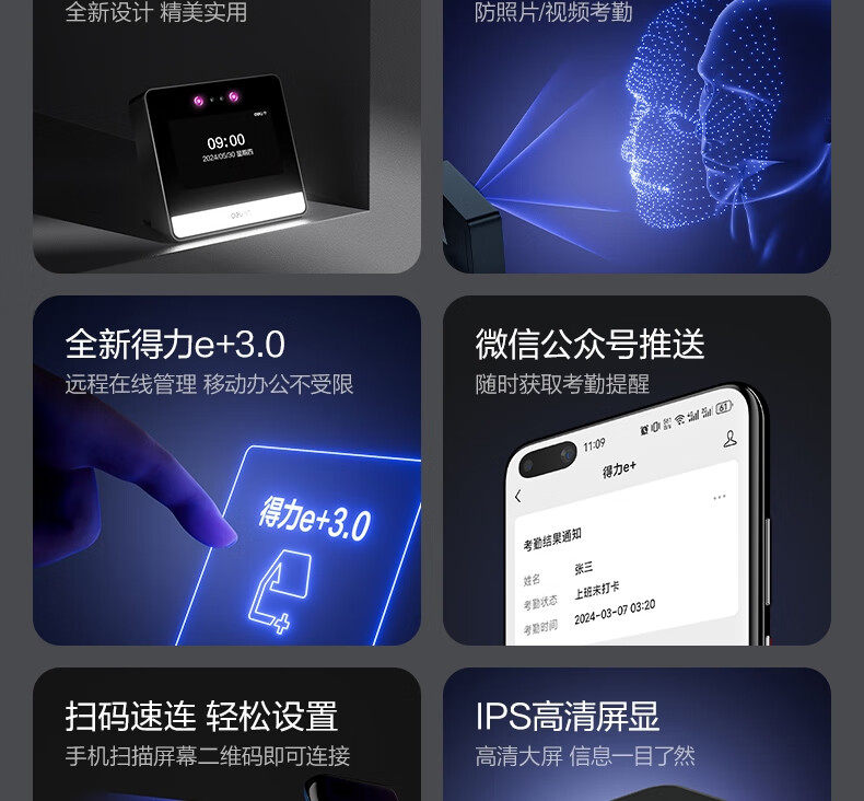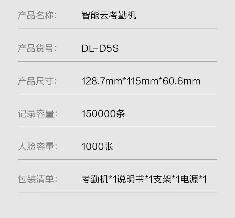 商品名称:得力D5S人脸识别打卡考勤机智能云多店管理指纹面部识别公司企业员工上下班签到机打卡器D2企业微信一体机D7F