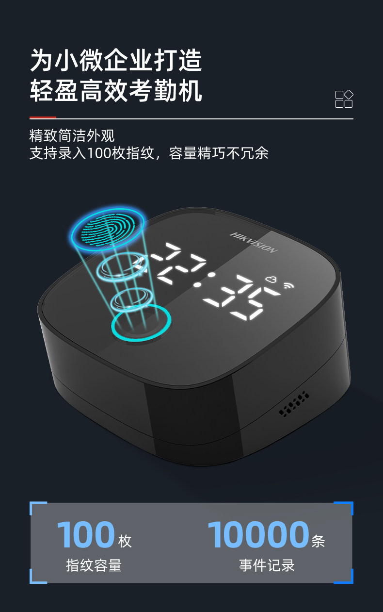 海康威视考勤机 人脸指纹签到打卡器 办公室园区员工打卡考勤签到机 企微异地定位打卡神器电脑手机多店管理