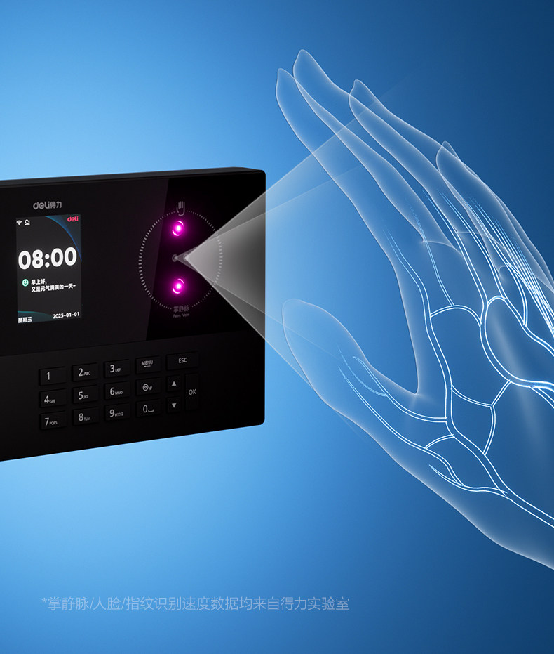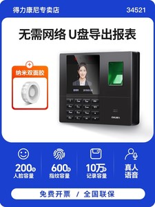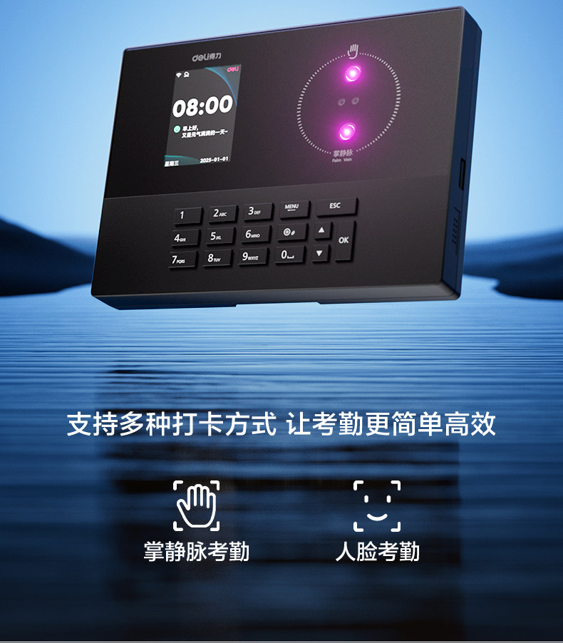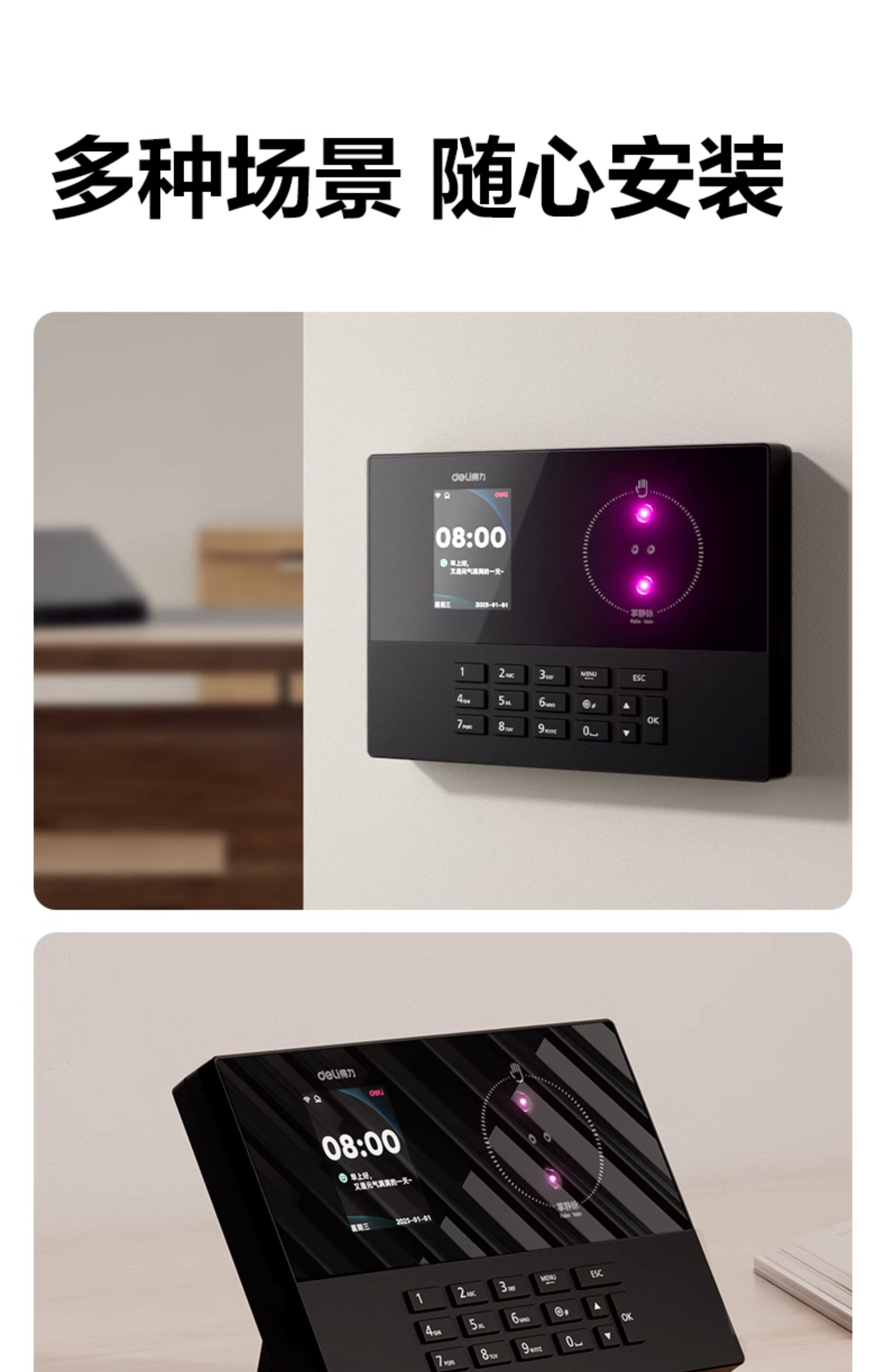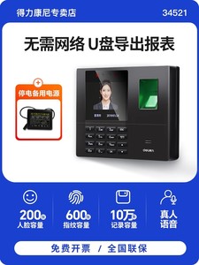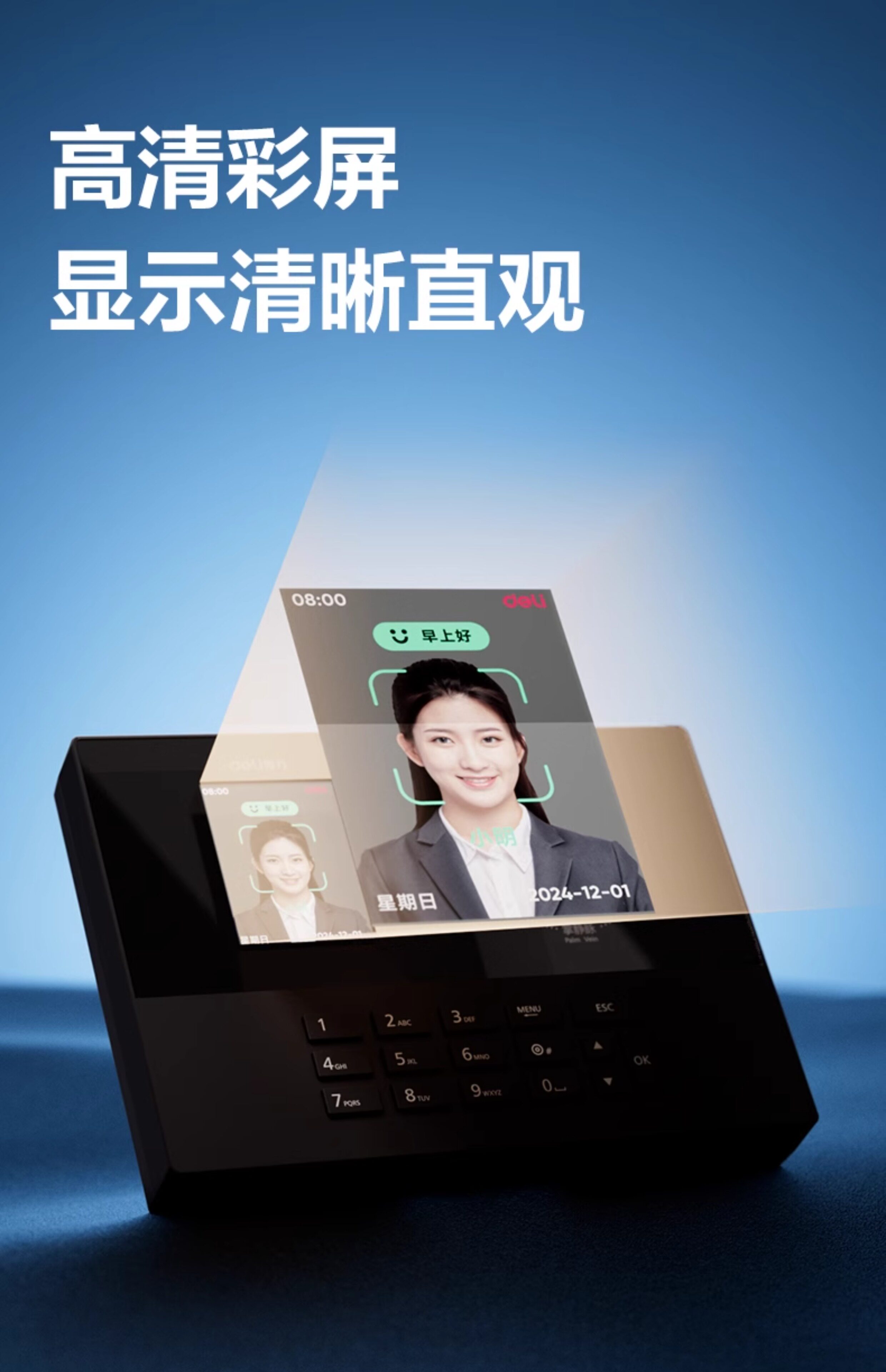 得力人脸识别打卡考勤机员工上下班扫脸打卡式记录机工地面部刷脸打卡考勤机2025新品升级更灵敏