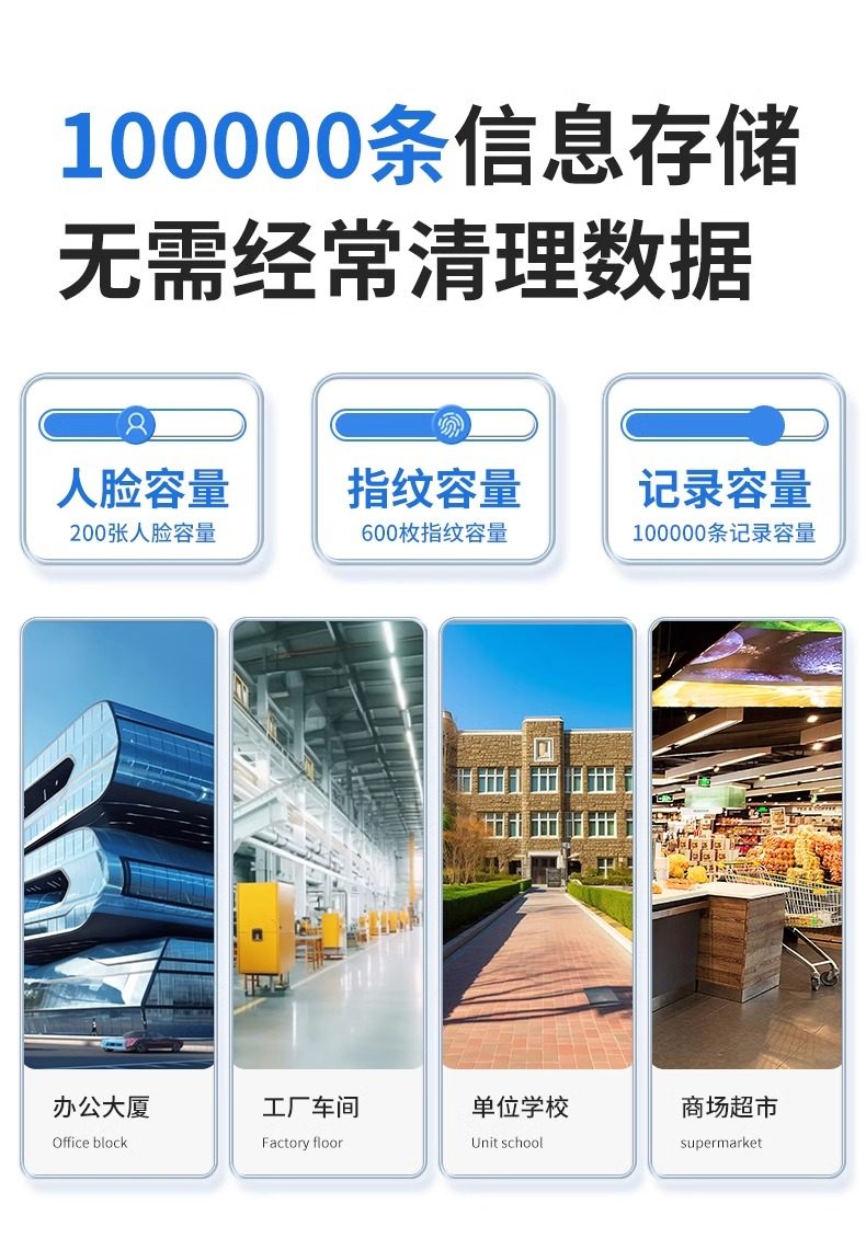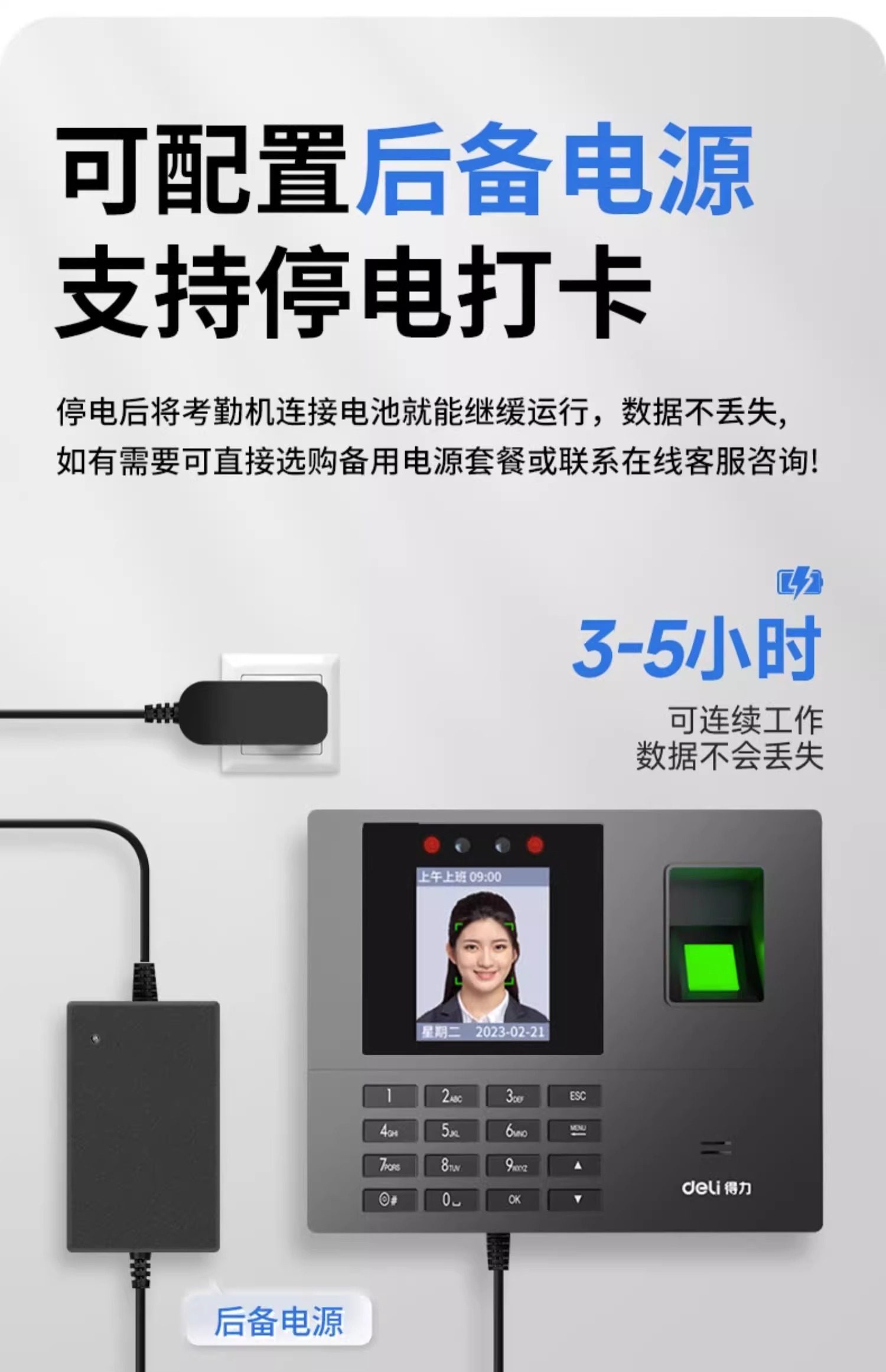 人脸+指纹单机款【无需网络/自动生成报表】+应急后备电源