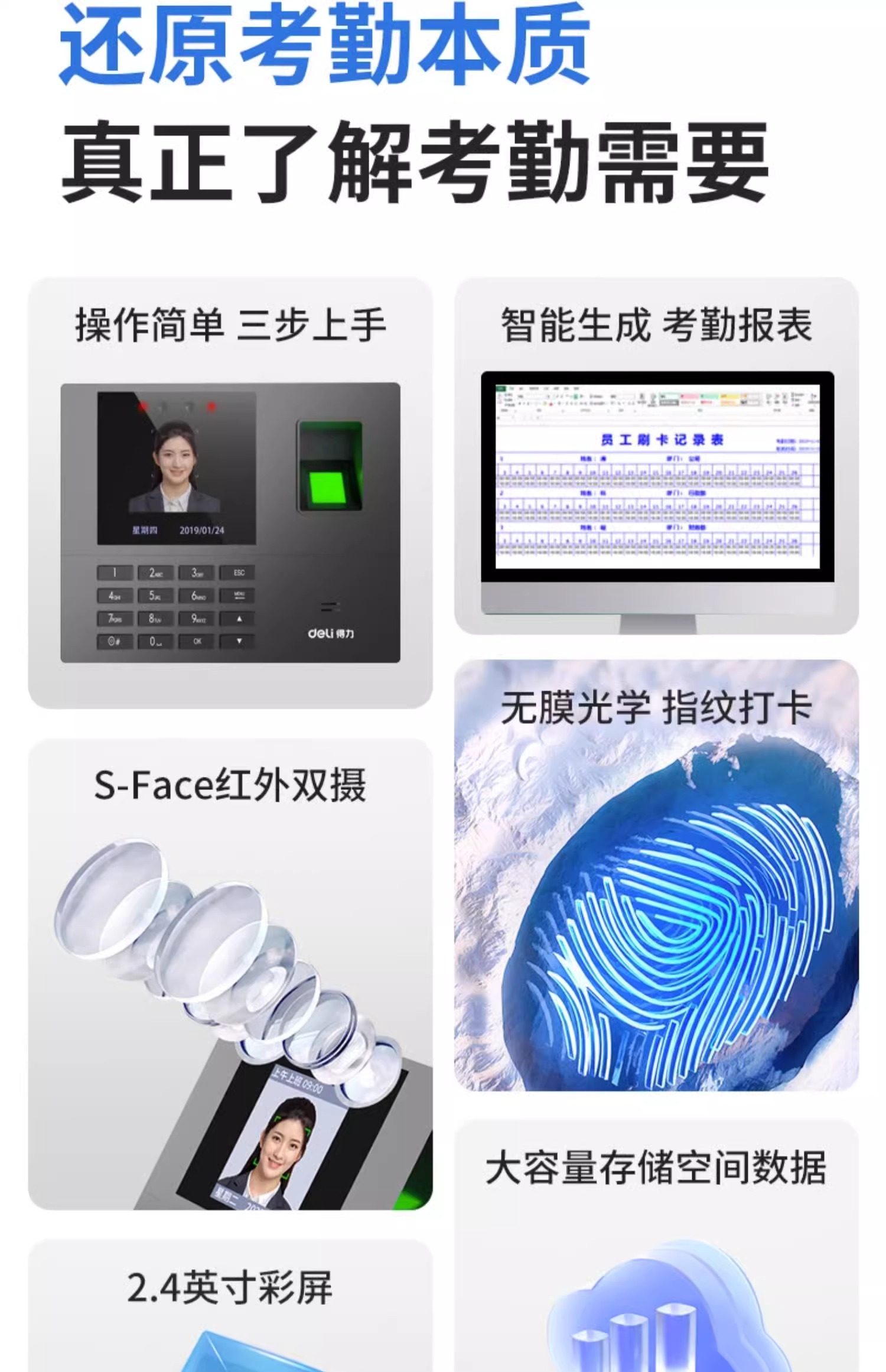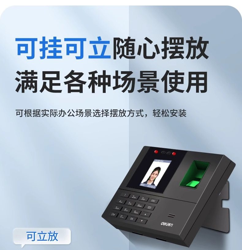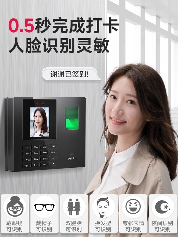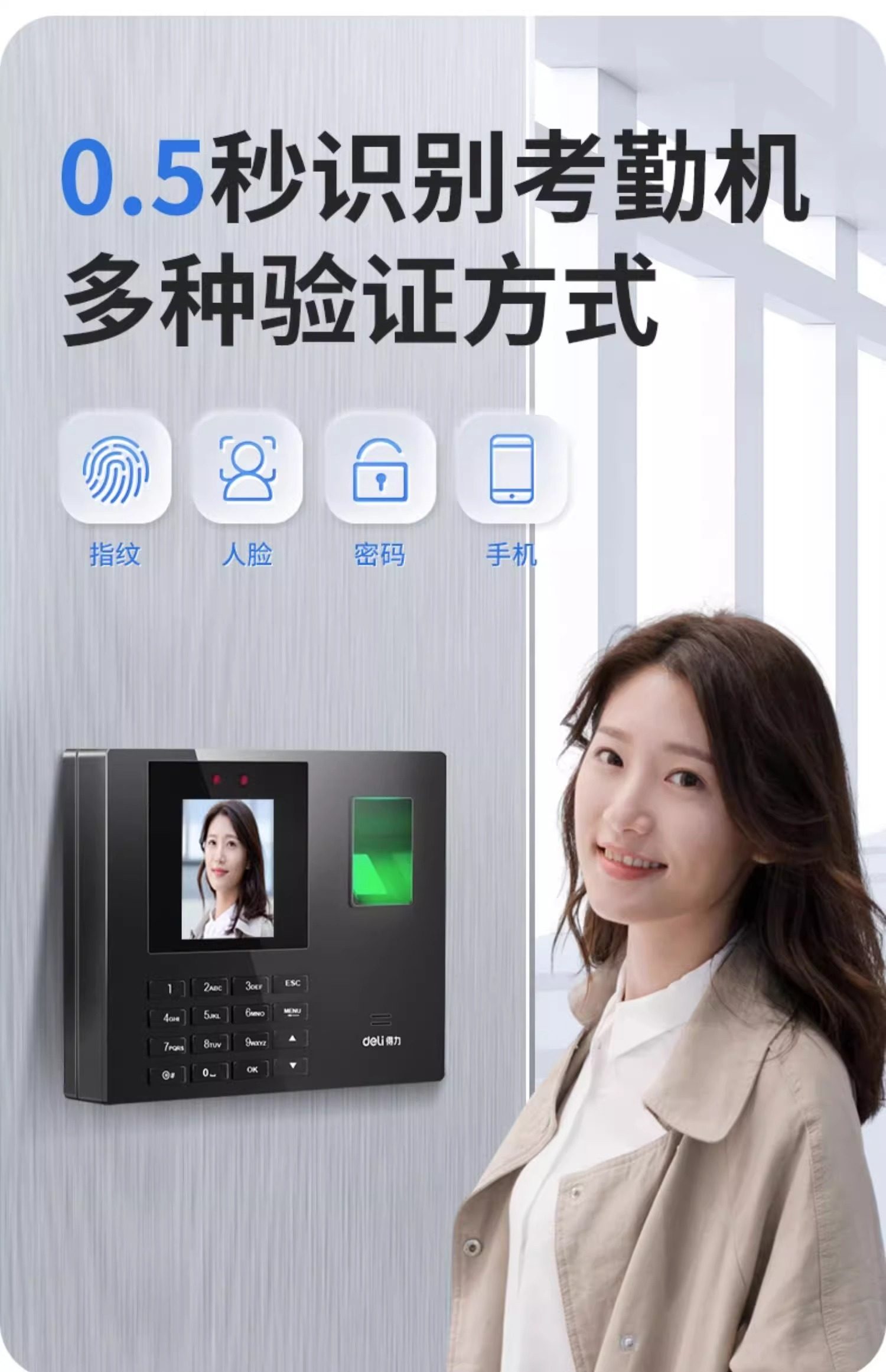 得力指纹打卡机人脸面部识别考勤机员工上下班签到智能云考勤一体