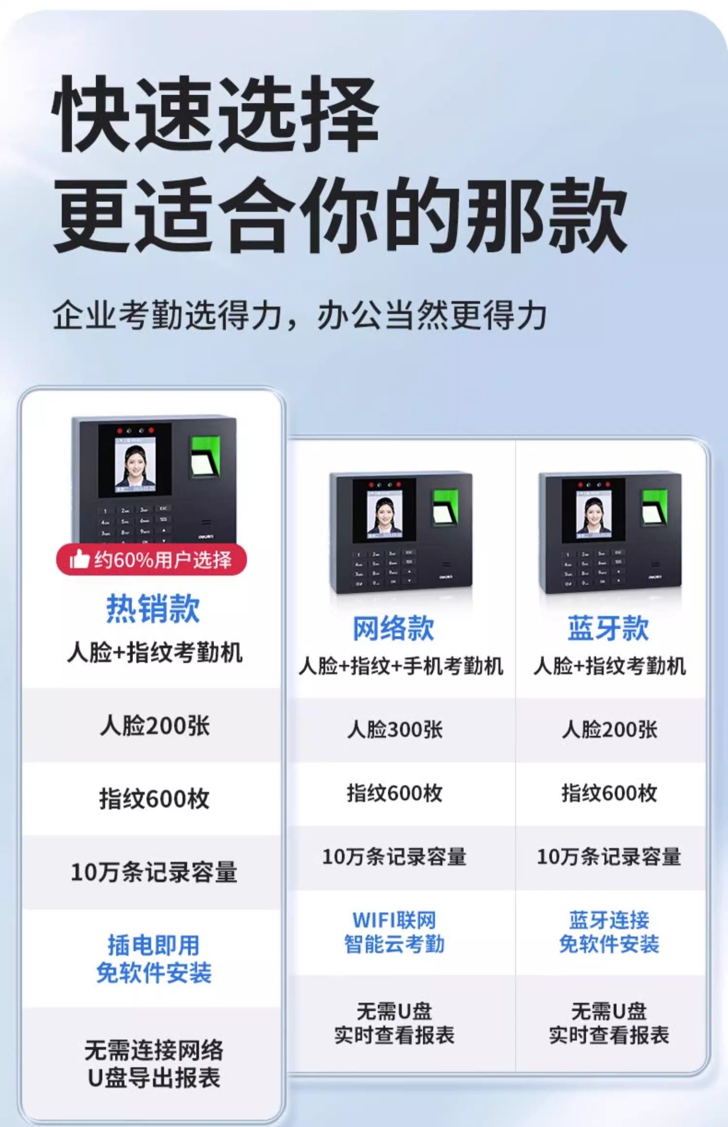 ♥店长推荐♥人脸+指纹单机款【无需网络/自动生成报表】+导表优盘
