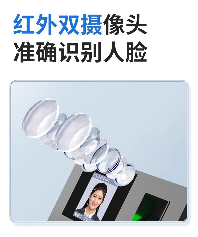 人脸+指纹单机款【无需网络/自动生成报表】++纳米胶【粘墙使用】