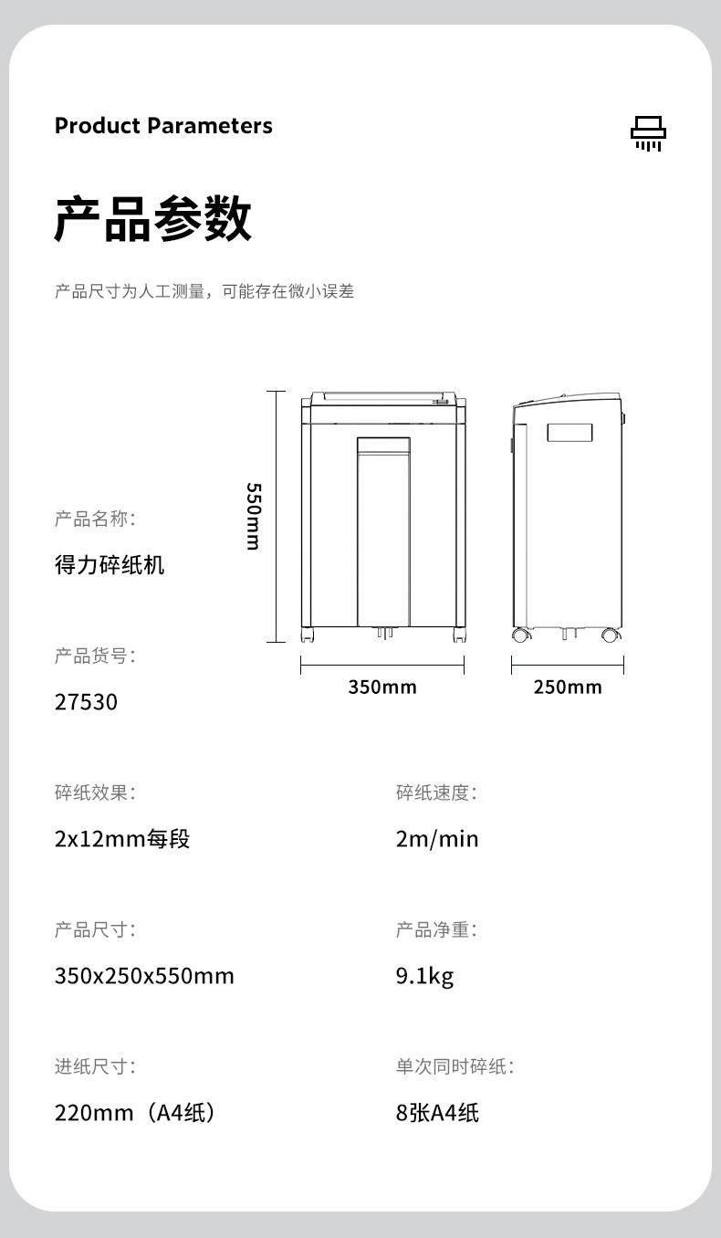 商品名称:得力27530碎纸机办公室专用大型家用小型自动 桌面电动文件粉碎机