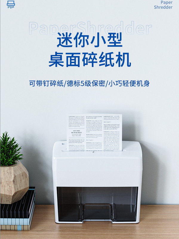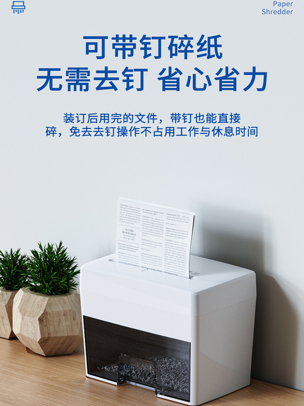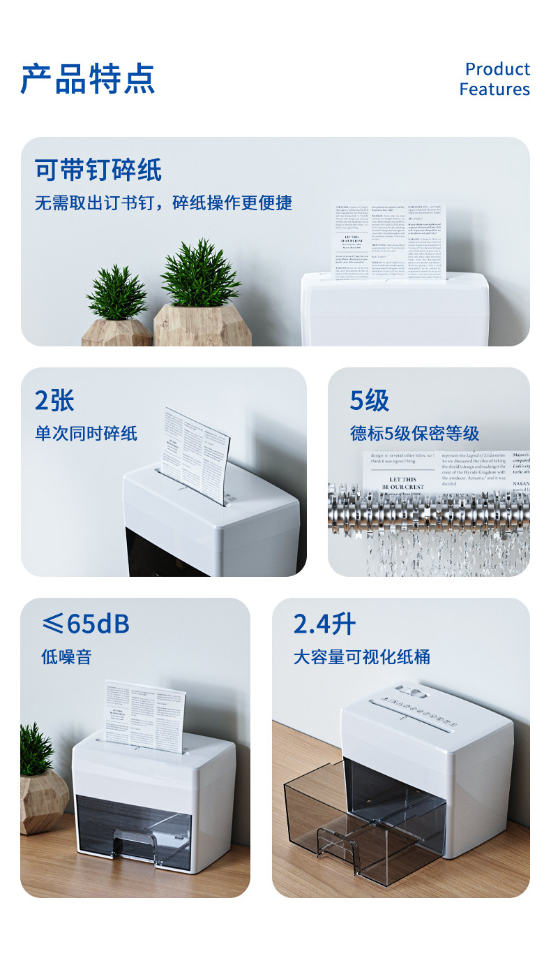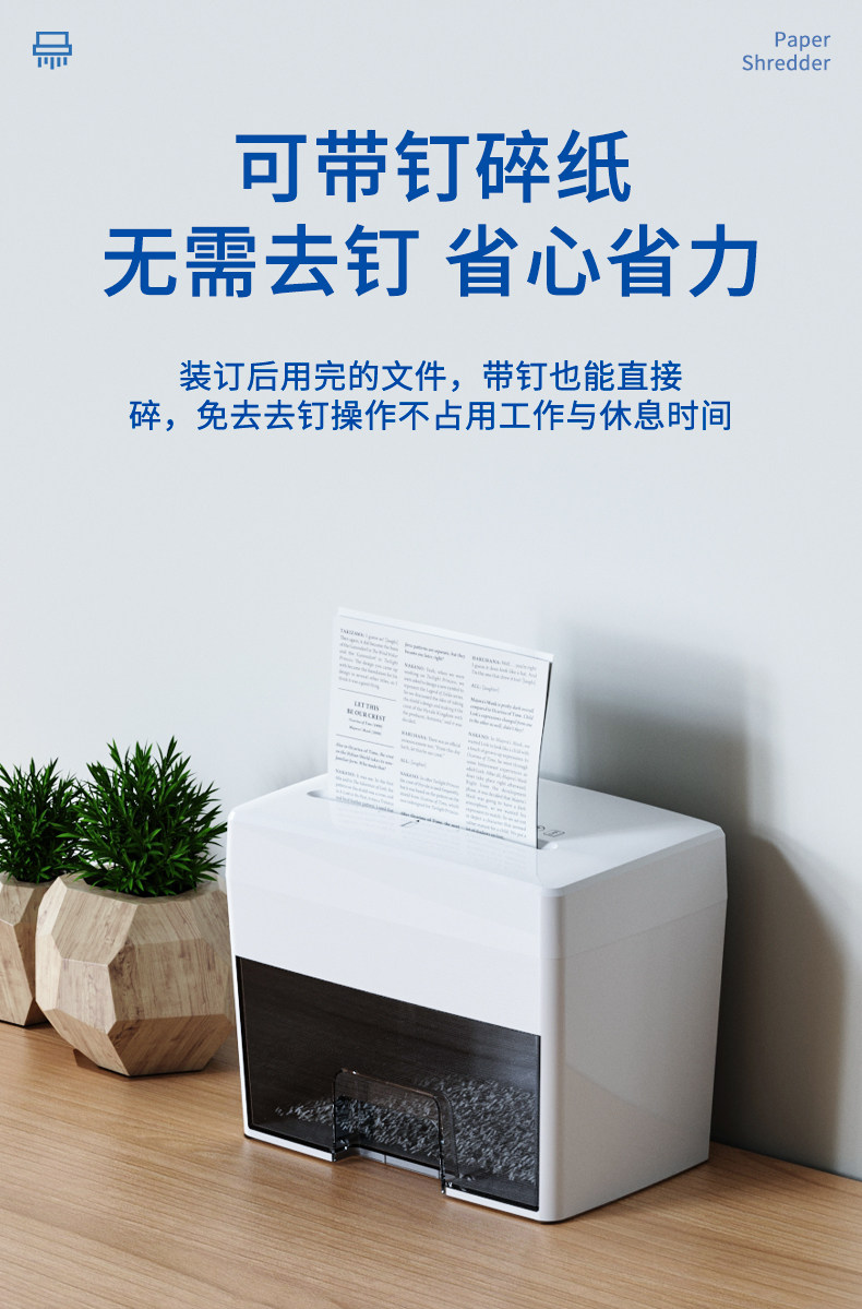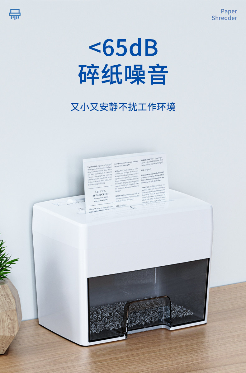 凌亚5级碎纸机家用办公室静音桌面小型照片纸张电动粉碎机颗粒状