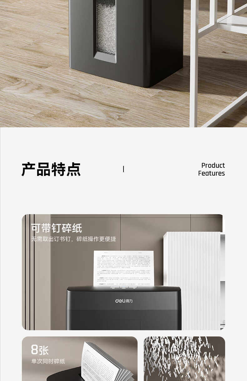 商品名称:得力(deli)商用办公碎纸机文件粉碎机GA311(连续碎纸10分钟单次8