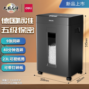 最新款 黑/五级保密/9张同碎/23L纸筒/40分钟连碎/可带钉碎纸