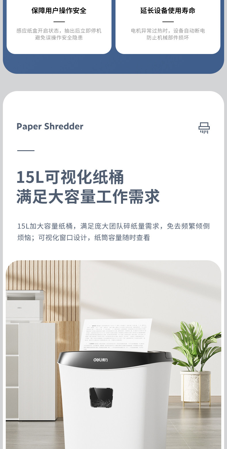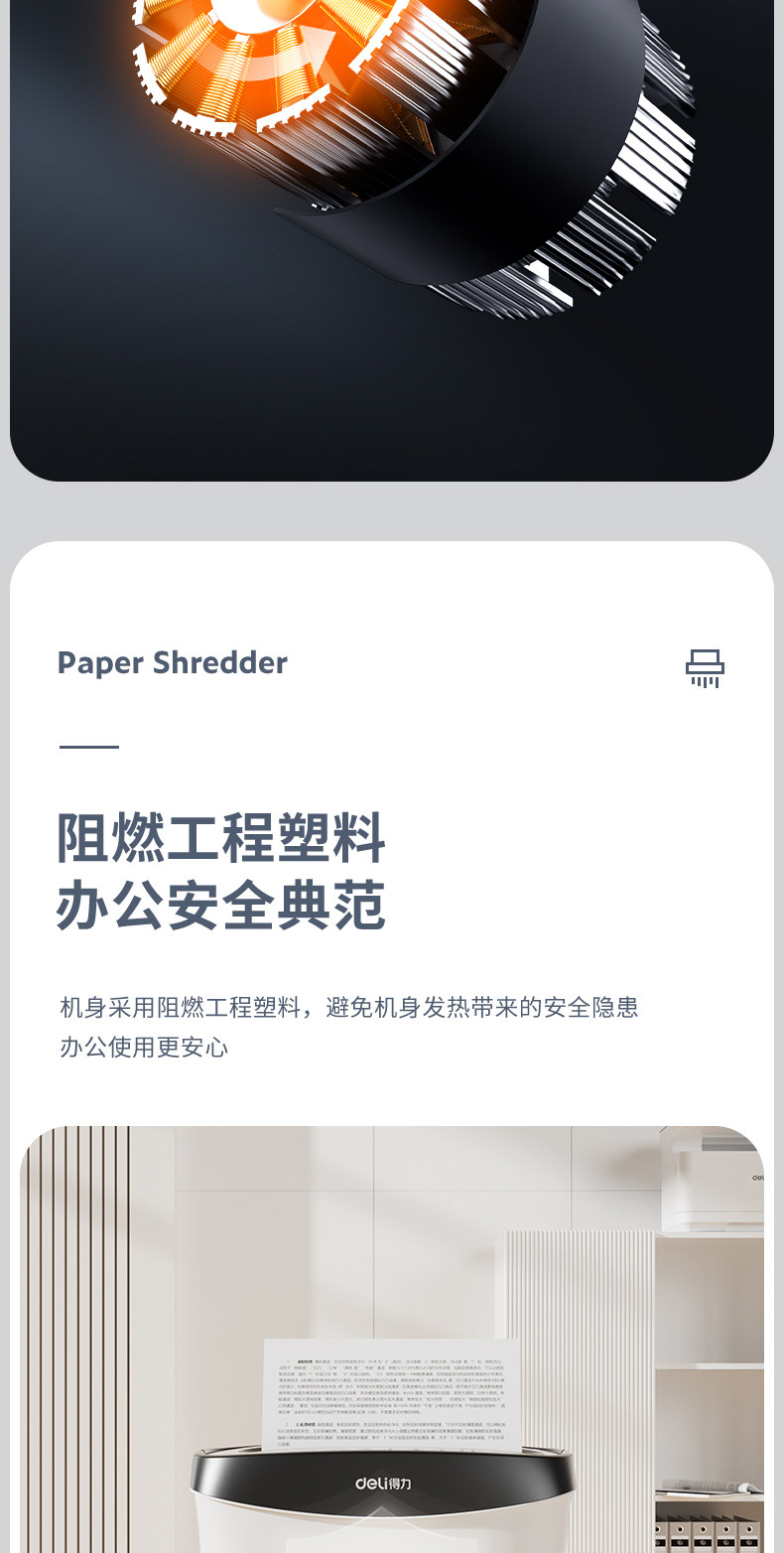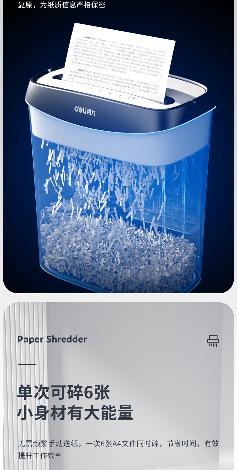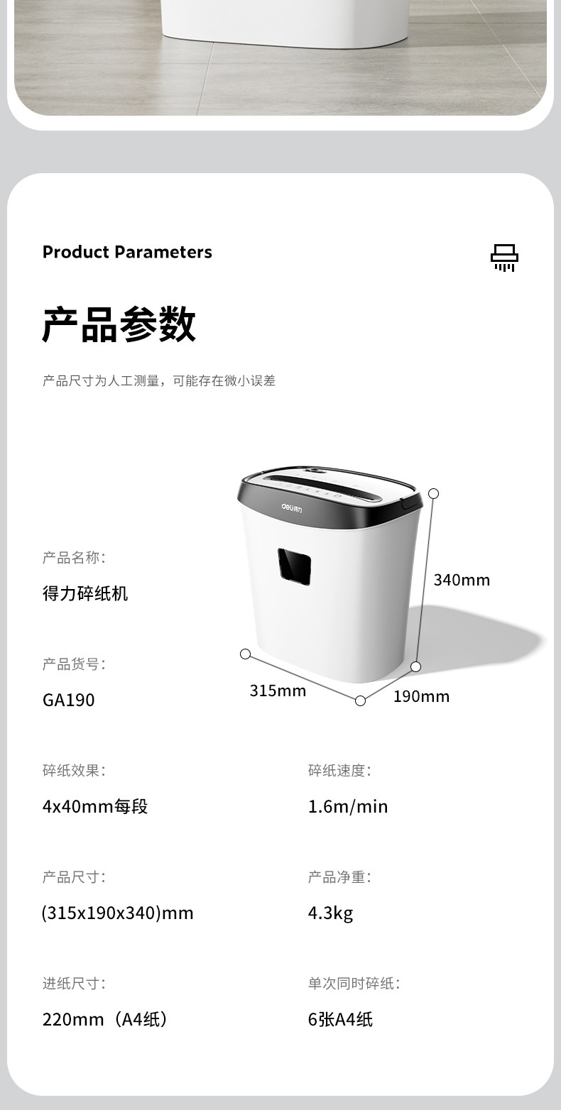 商品名称:得力GA190碎纸机办公自动家用电动大功率桌面纸张文件小型粉碎机