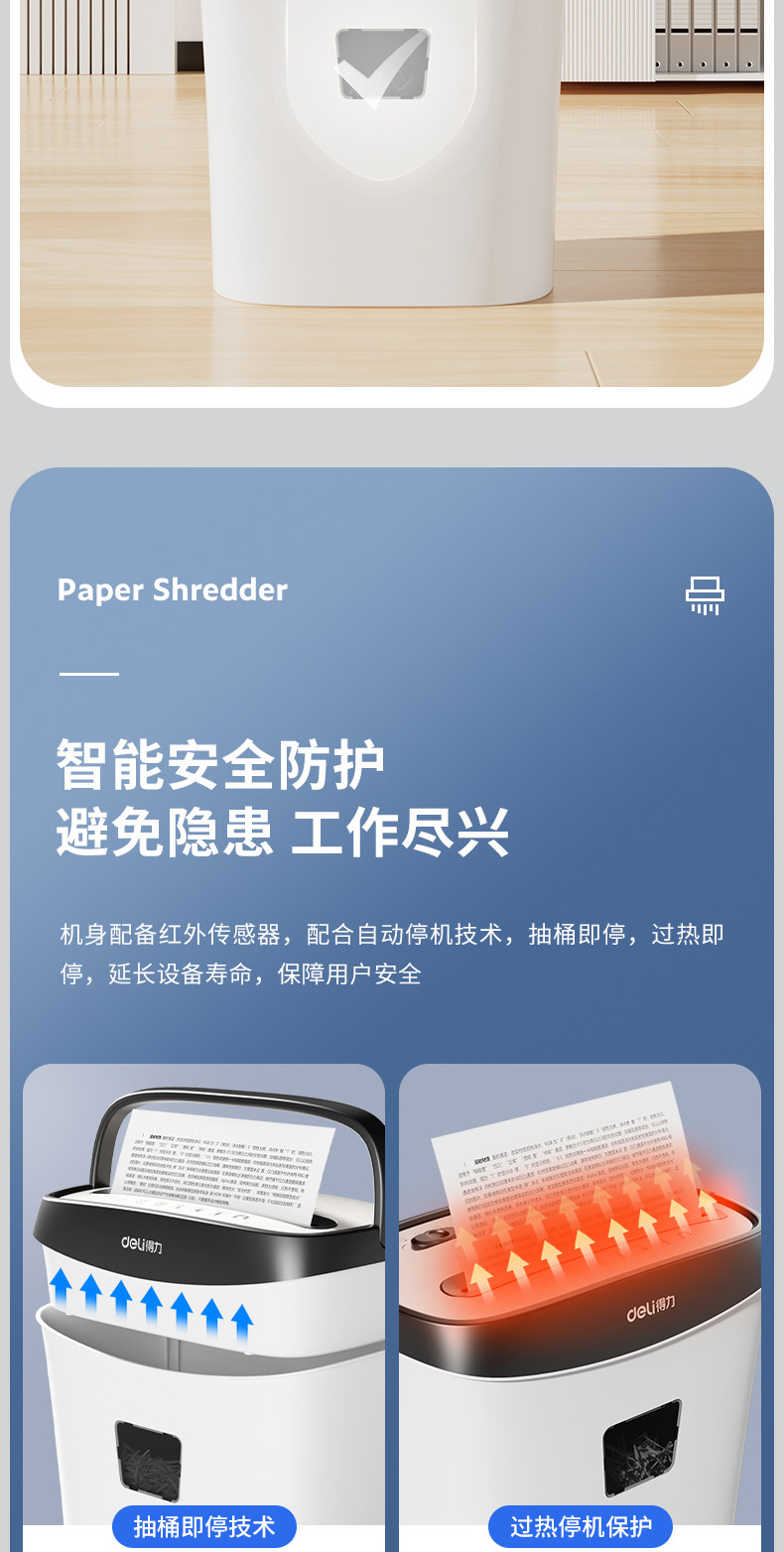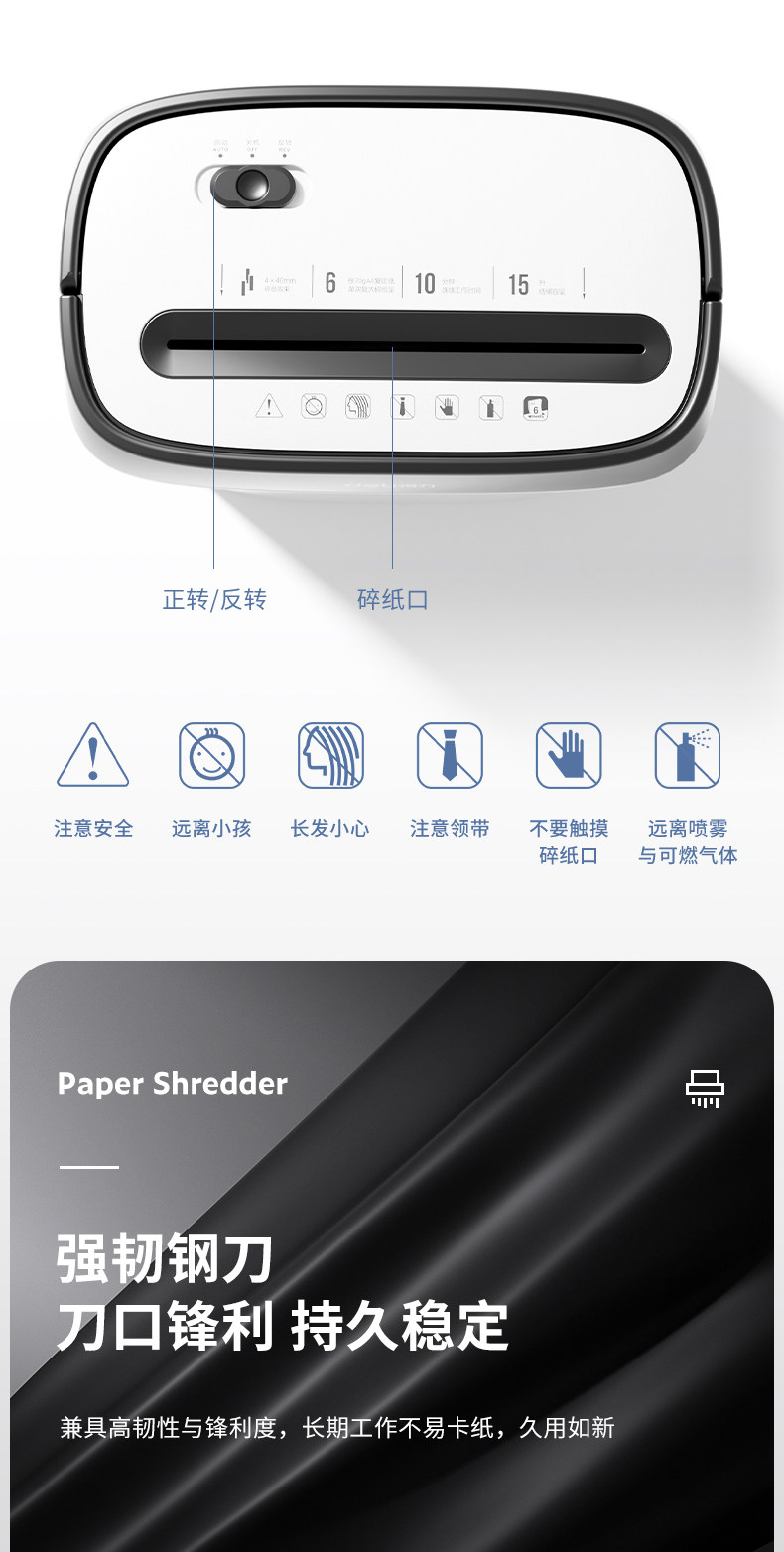 最新款 白/五级保密/9张同碎/23L纸筒/40分钟连碎/可带钉碎纸