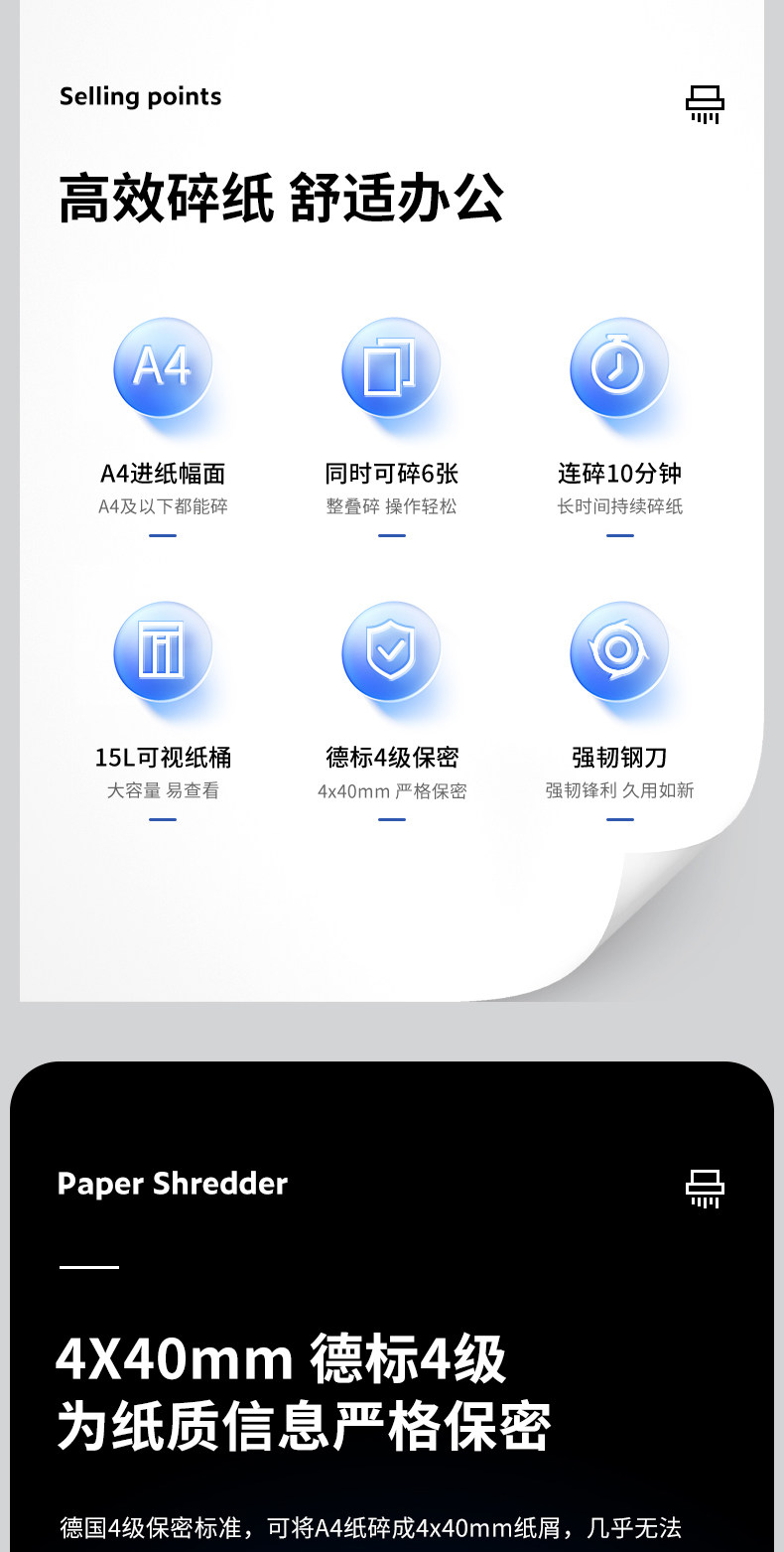最新升级款 黑/五级保密/10张同碎/23L纸筒/75分钟连碎/可带钉碎纸