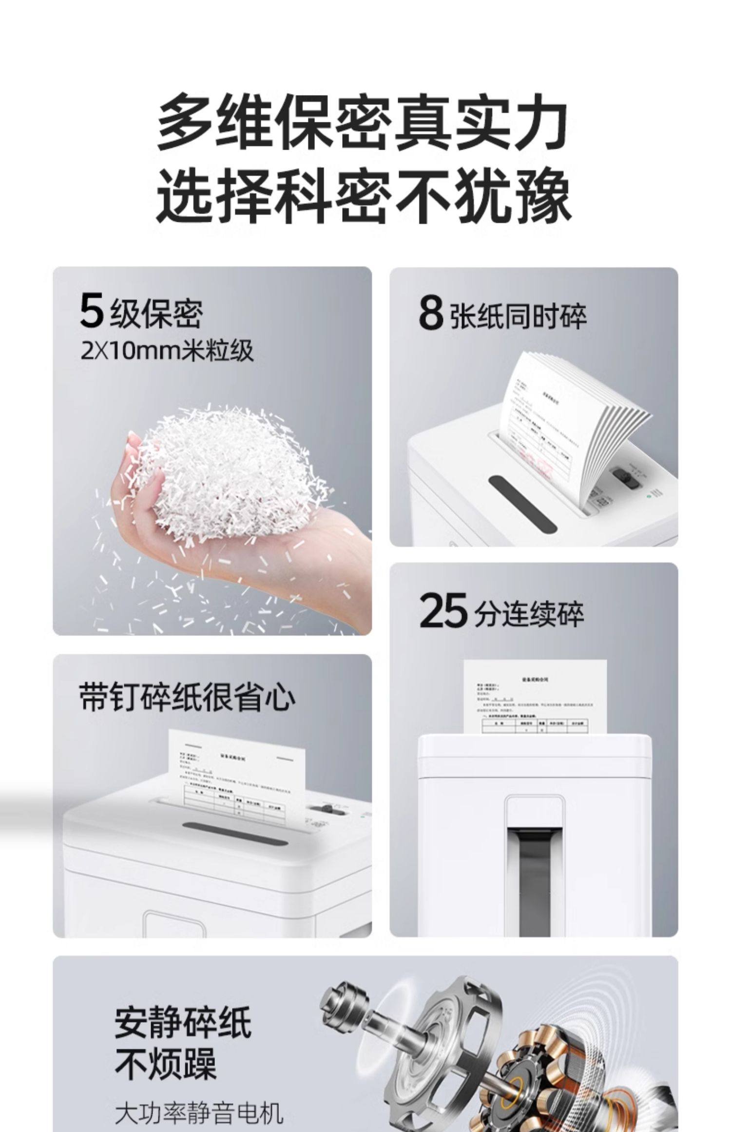 科密C838经典米粒级德国5级保密高速办公碎纸机 自动商用大功率大量碎钉家用小型电动办公室A4文件粉碎机