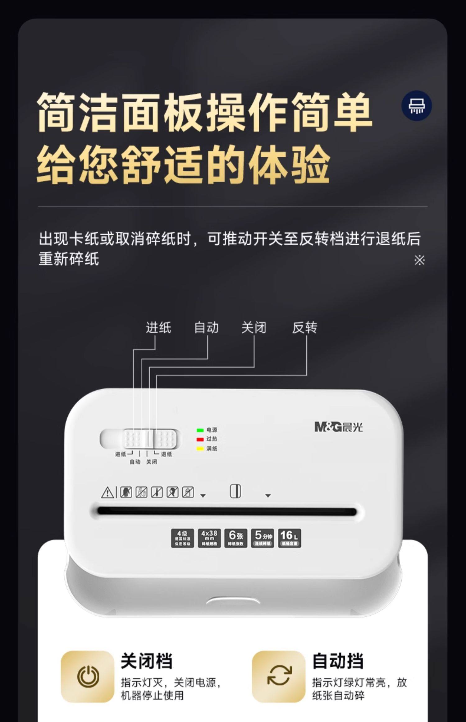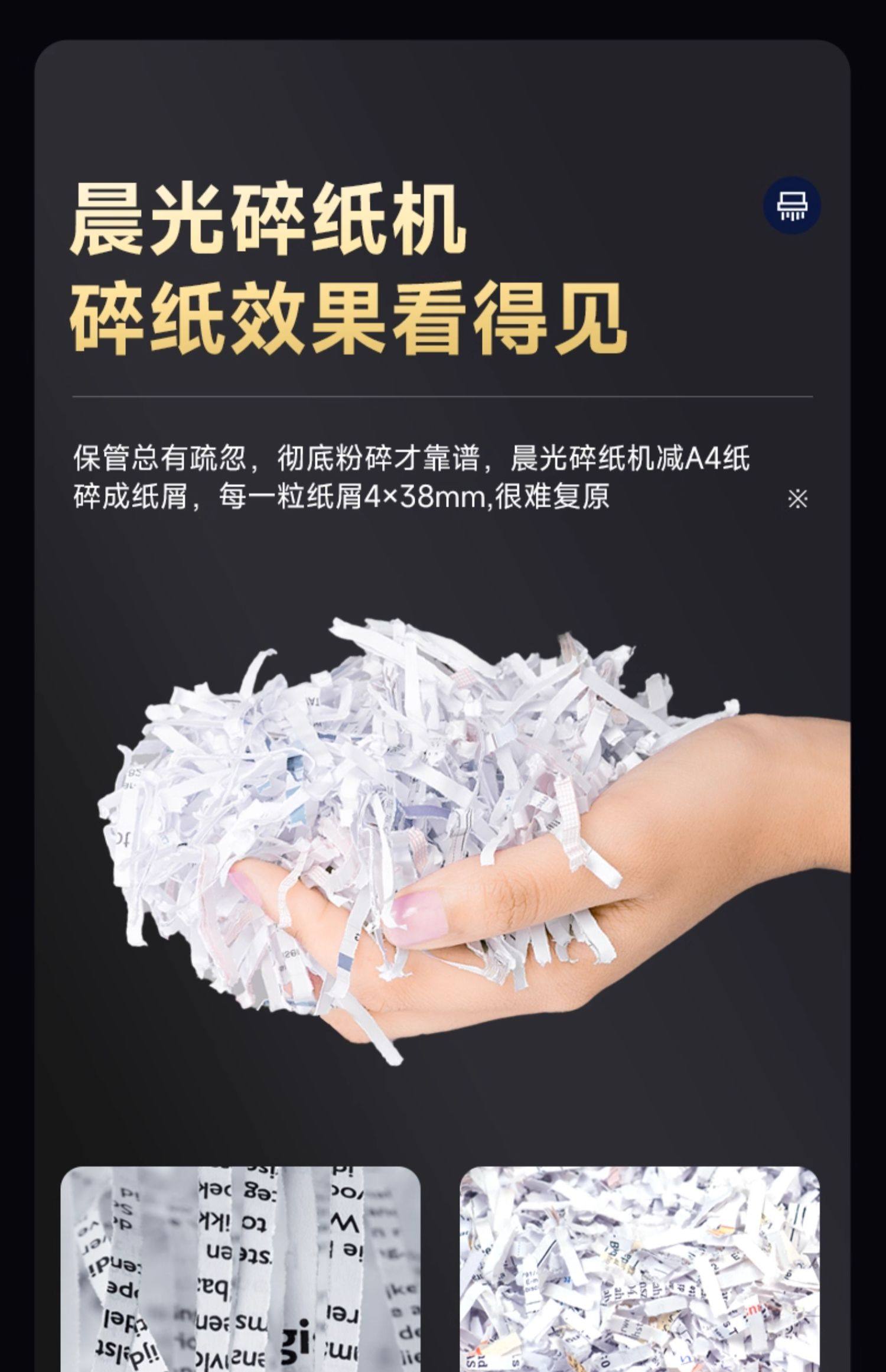 【苏宁好物】晨光碎纸机办公室专用全自动大功率电动商务文件粉碎机纸张资料5级保密小型家用小型办公2061