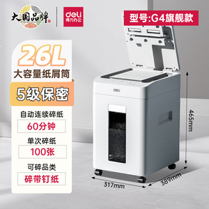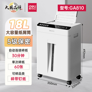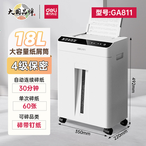 商品名称:【得力全自动碎纸机】办公室专用批量文件粉碎机大型商用碎纸机大容量100张全自动连碎可碎光盘碎卡GA811/G4