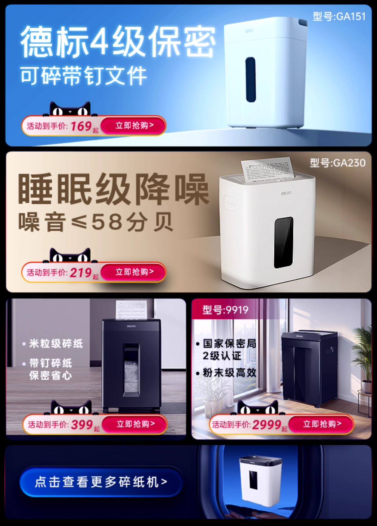 ⬇⬇⬇以下款为小型碎纸机 | 可桌面或地面放置⬇⬇⬇