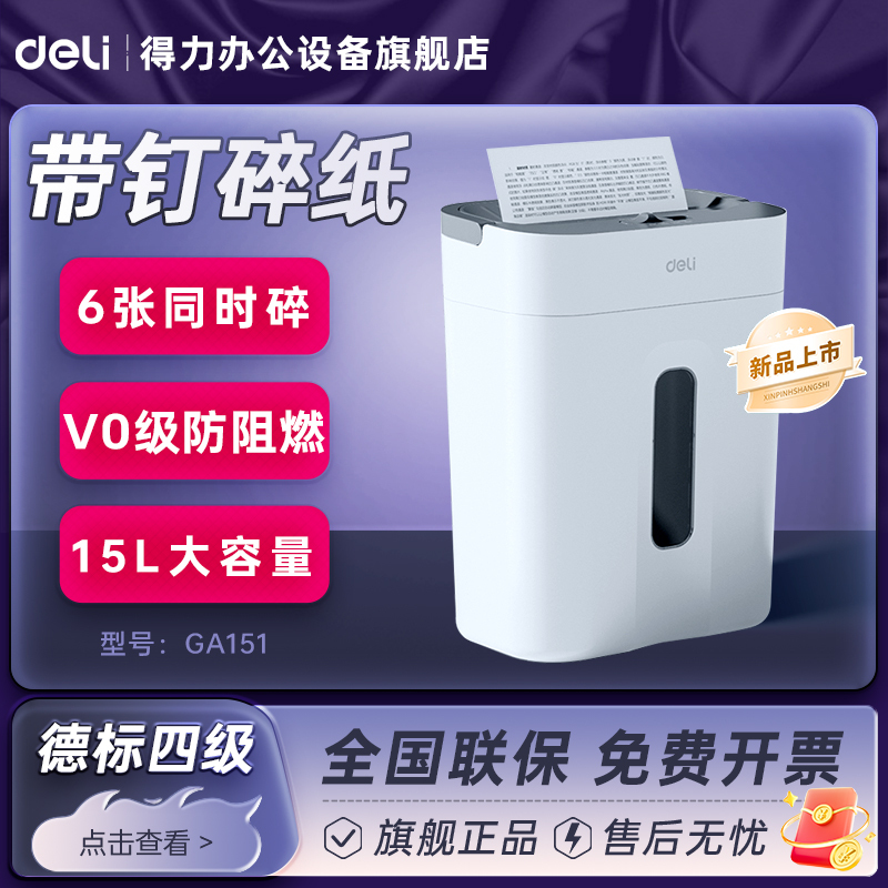 得力GA151小型碎纸机办公室自动家用颗粒状电动商用9939桌面纸张文件粉碎机GA390德标5级保密碎带钉文件碎卡