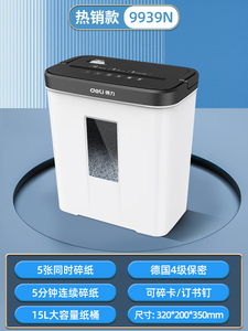 热销款【5分钟连碎 5张同碎 15升容量 4级保密 可碎带钉文件】9939简约白