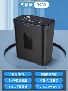 热销款【5分钟连碎 5张同碎 15升容量 4级保密 可碎带钉文件】9939星耀黑