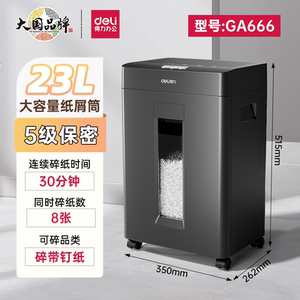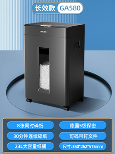 长效款【30分钟连碎 8纸同碎 23升容量 5级保密 可碎带钉文件】GA580