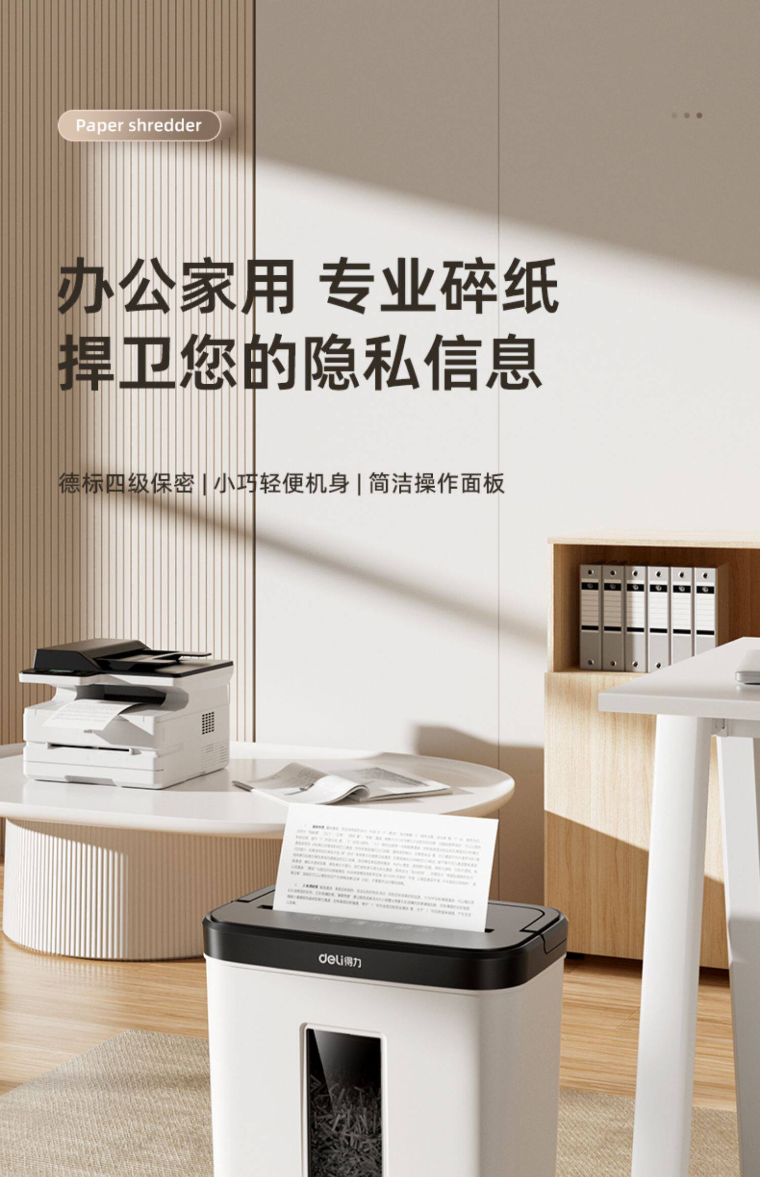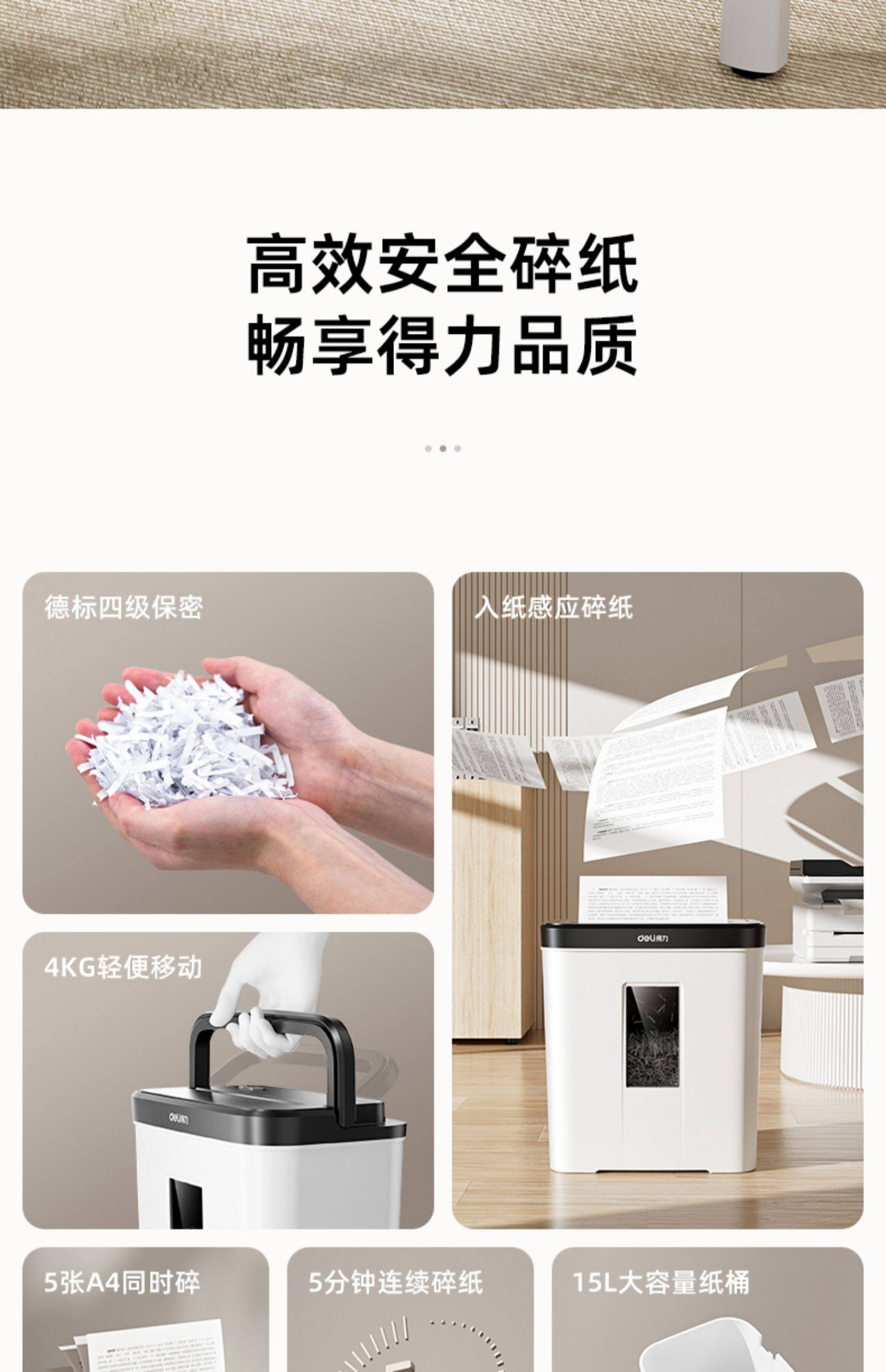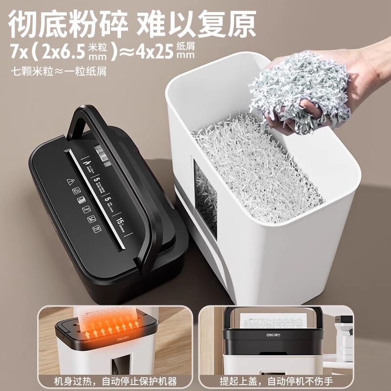 25年得力新款家用小型迷你碎纸机办公室全自动桌面商用4级保密粉碎机碎文件纸张可带钉碎纸现代简约时尚款