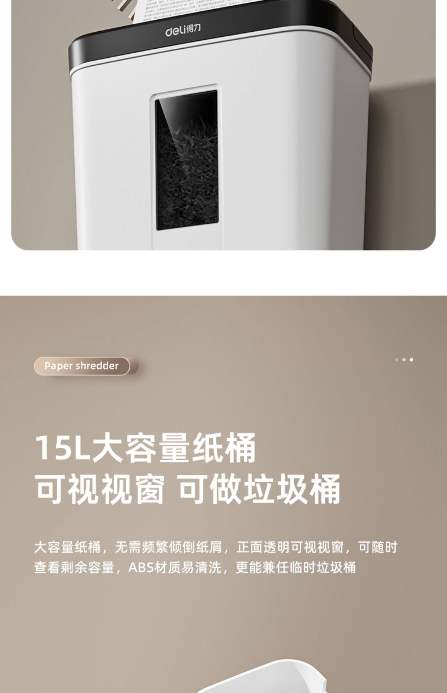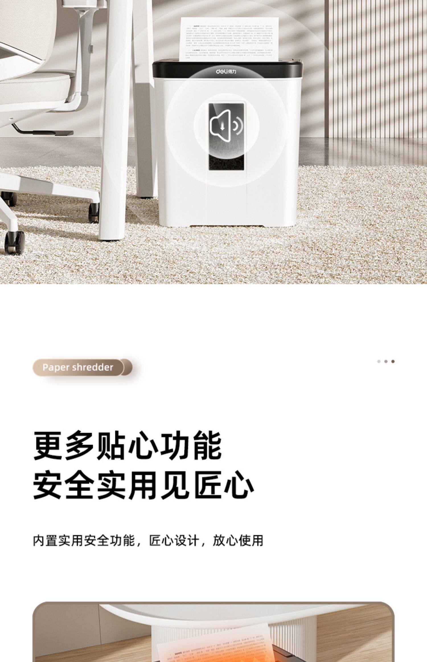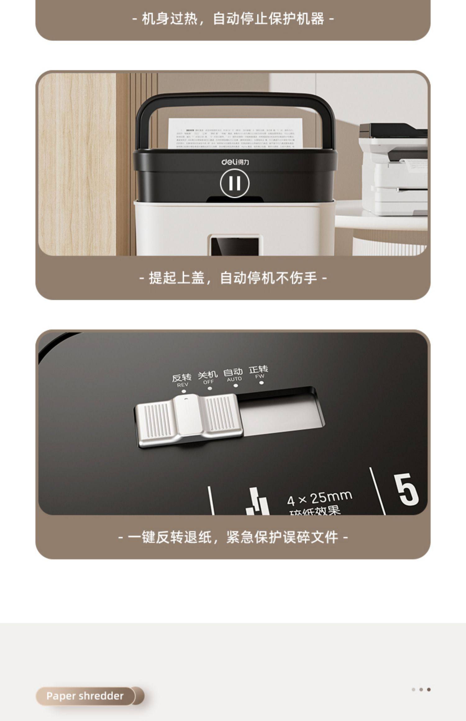 25年得力新款家用小型迷你碎纸机办公室全自动桌面商用4级保密粉碎机碎文件纸张可带钉碎纸现代简约时尚款