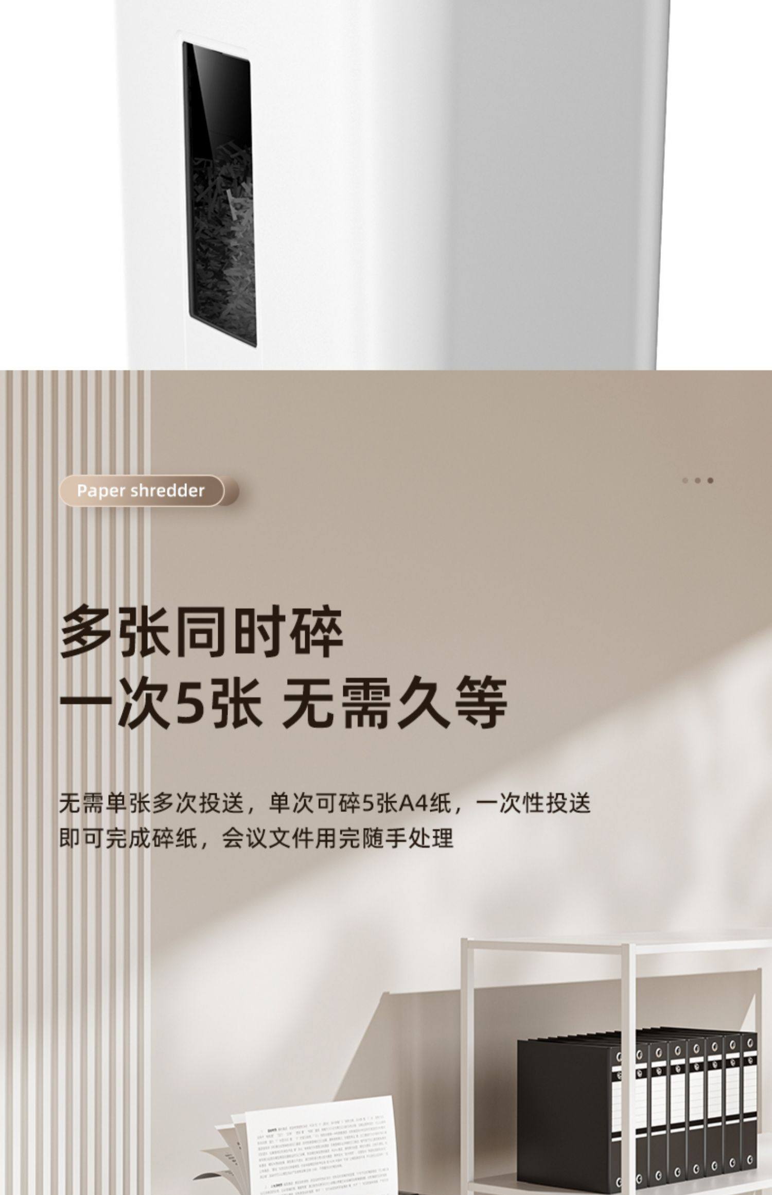 时尚款【5分钟连碎 5张同碎 17升容量 4级保密 可碎带钉文件】9929白