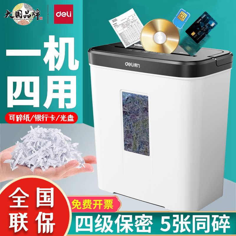 商品名称:【4合1多功能】得力碎纸机办公室专用自动家用小型迷你商用大功率纸张5级保密电动碎卡碎光盘文件粉碎机光盘