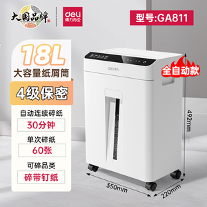 自动碎纸款【4级保密丨30分钟自动丨单次60张丨18L容量】❤特价款GA811