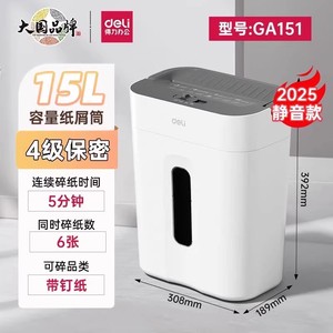 【得力办公静音碎纸机】办公室专用商用5级保密文件粉碎机纸张大型自动超大容量大功率批量碎卡机官方正品