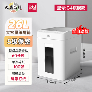 商品名称:【得力办公静音碎纸机】办公室专用商用5级保密文件粉碎机纸张大型自动超大容量大功率批量碎卡机官方正品