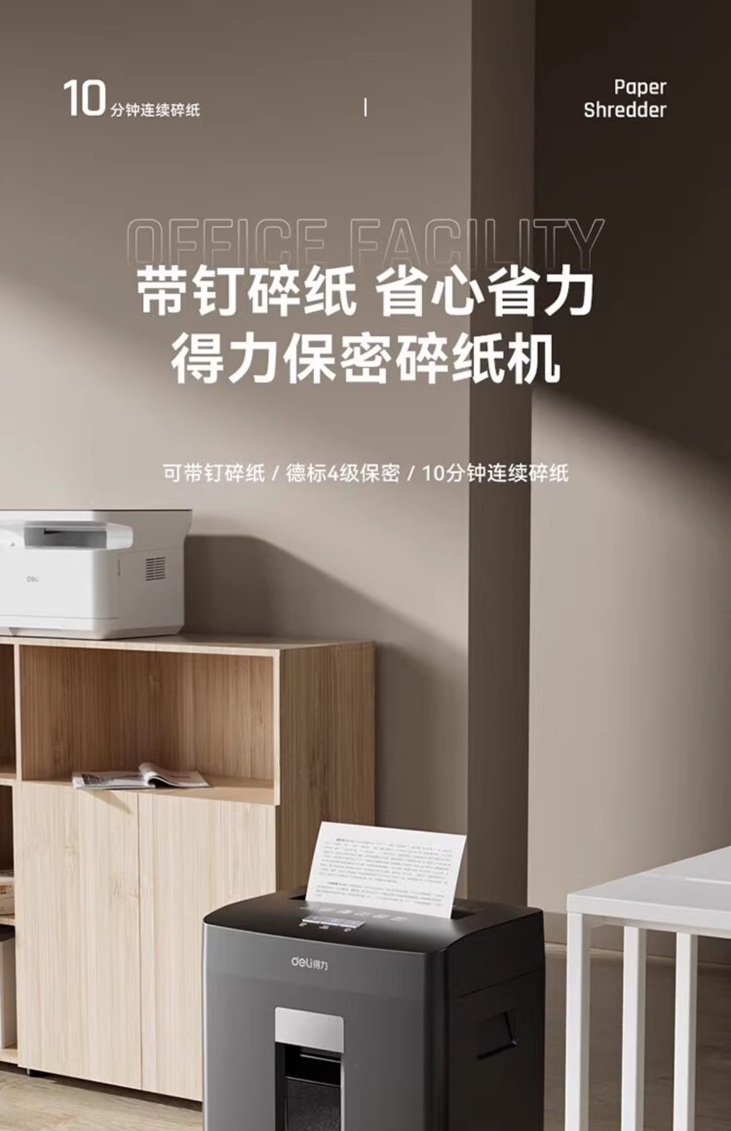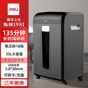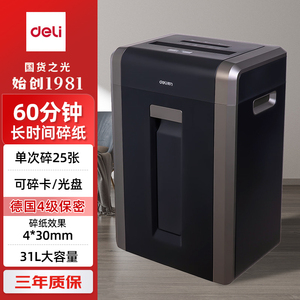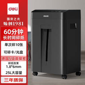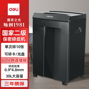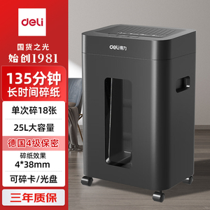 得力(deli)碎纸机高保密文件粉碎机商务办公大容量碎纸机长时间大型文件碎光盘全自动碎纸机