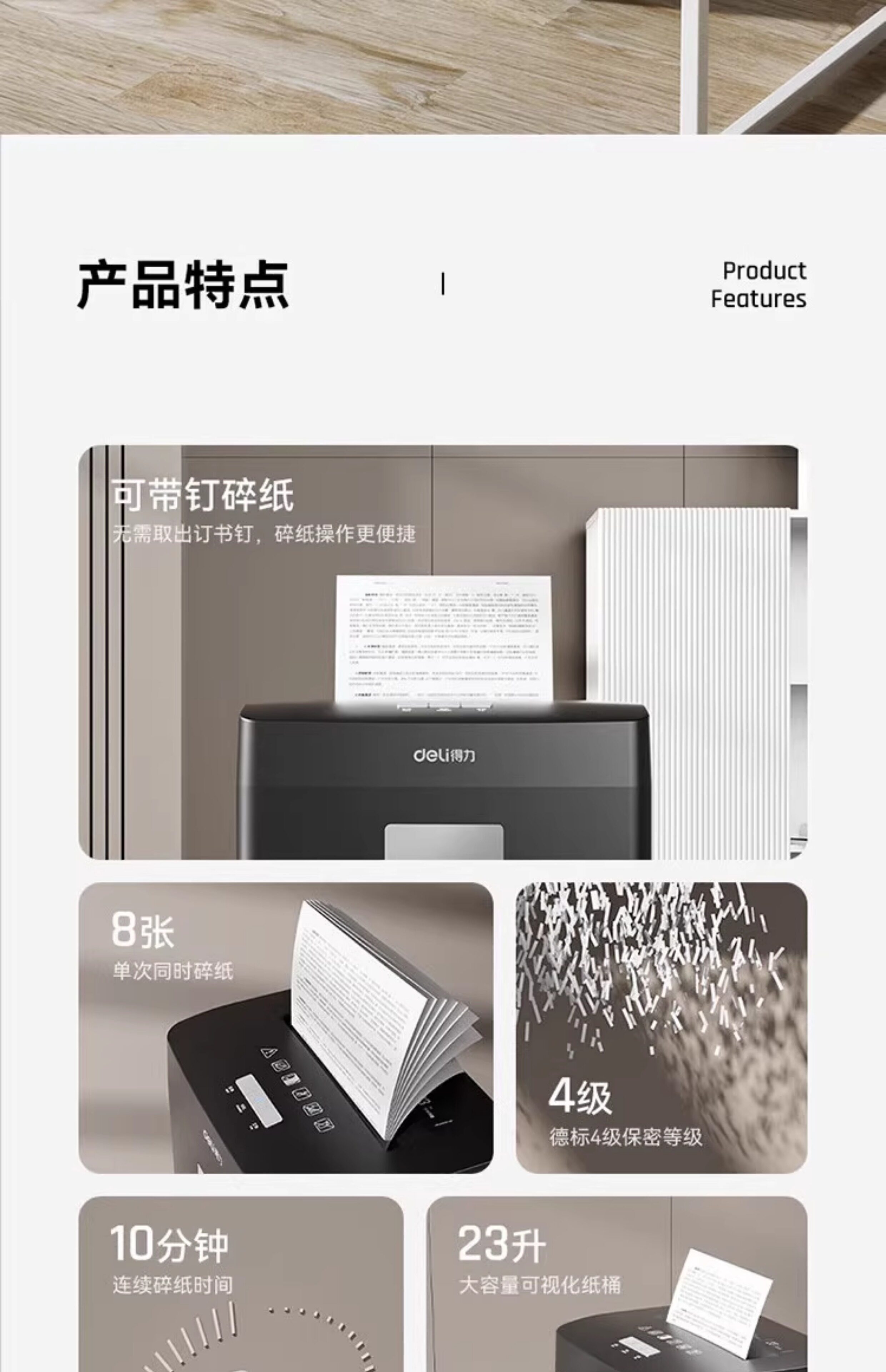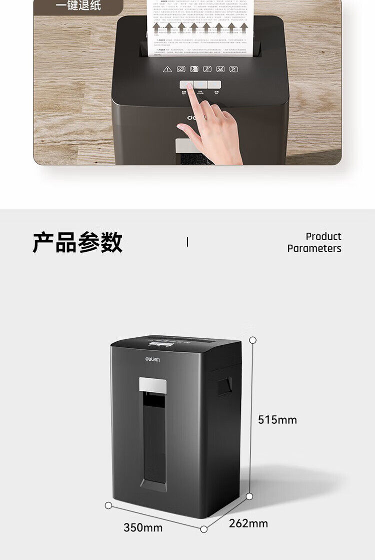 商品名称:得力(deli)碎纸机高保密文件粉碎机商务办公大容量碎纸机长时间大型文件碎光盘全自动碎纸机