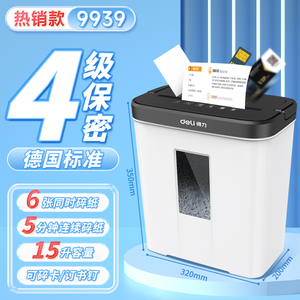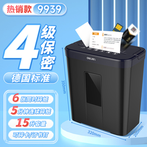 得力碎纸机9939家用自动办公室电动大功率商用便捷桌面纸张文件迷你小型手动粉碎机神器5级保密碾碎机光盘卡