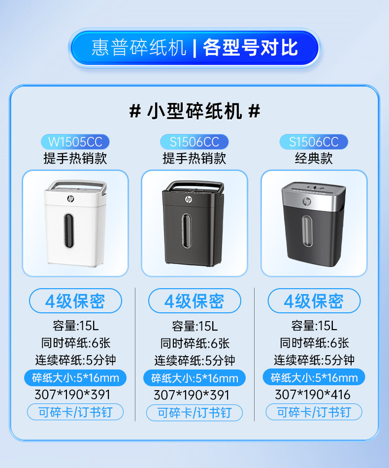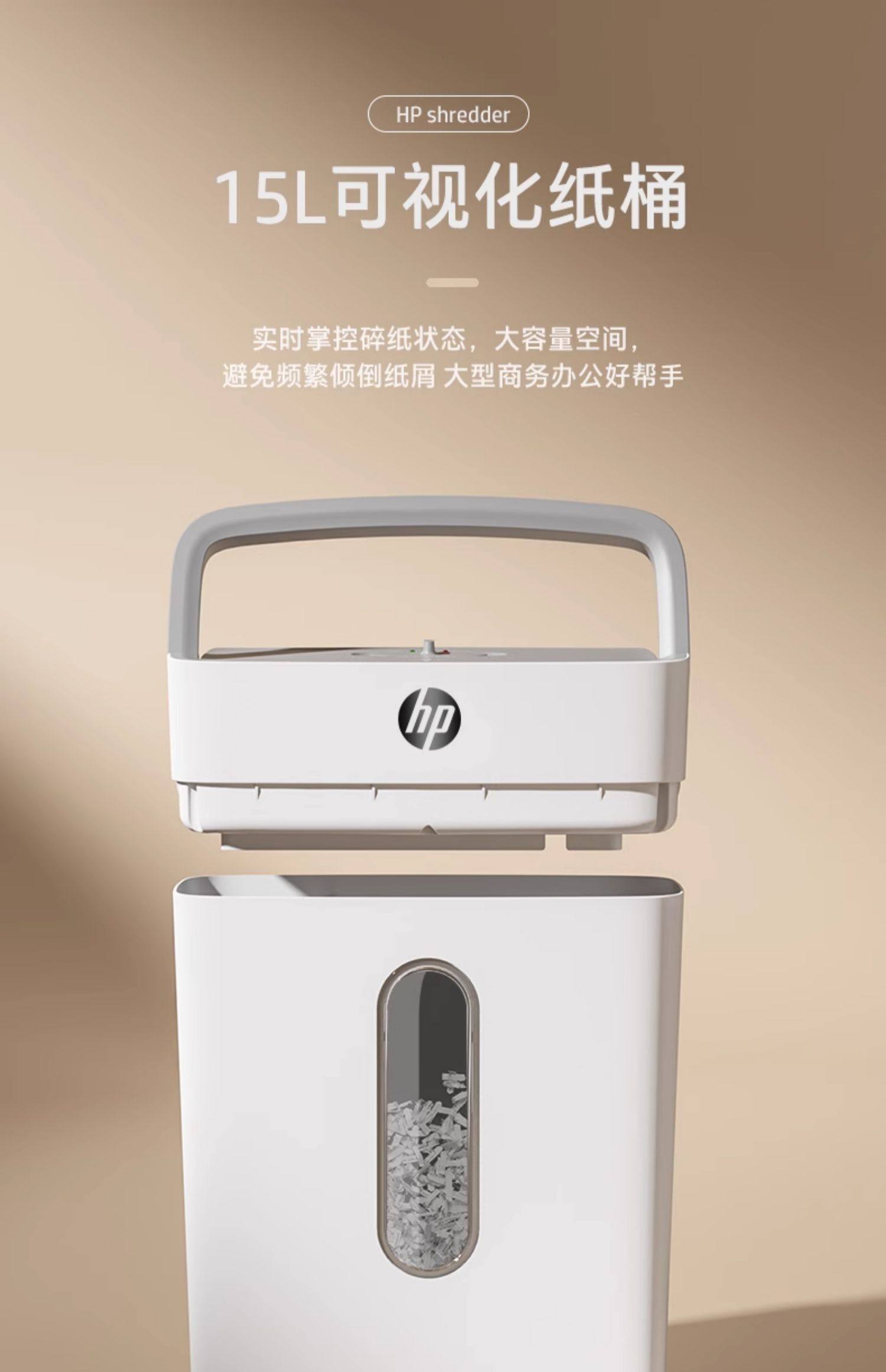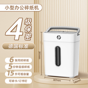 惠普碎纸机办公室专用全自动办公家用家庭商用迷你小型粉碎机4级保密桌面纸碎卡光盘胶卷W1506CCW1505CC