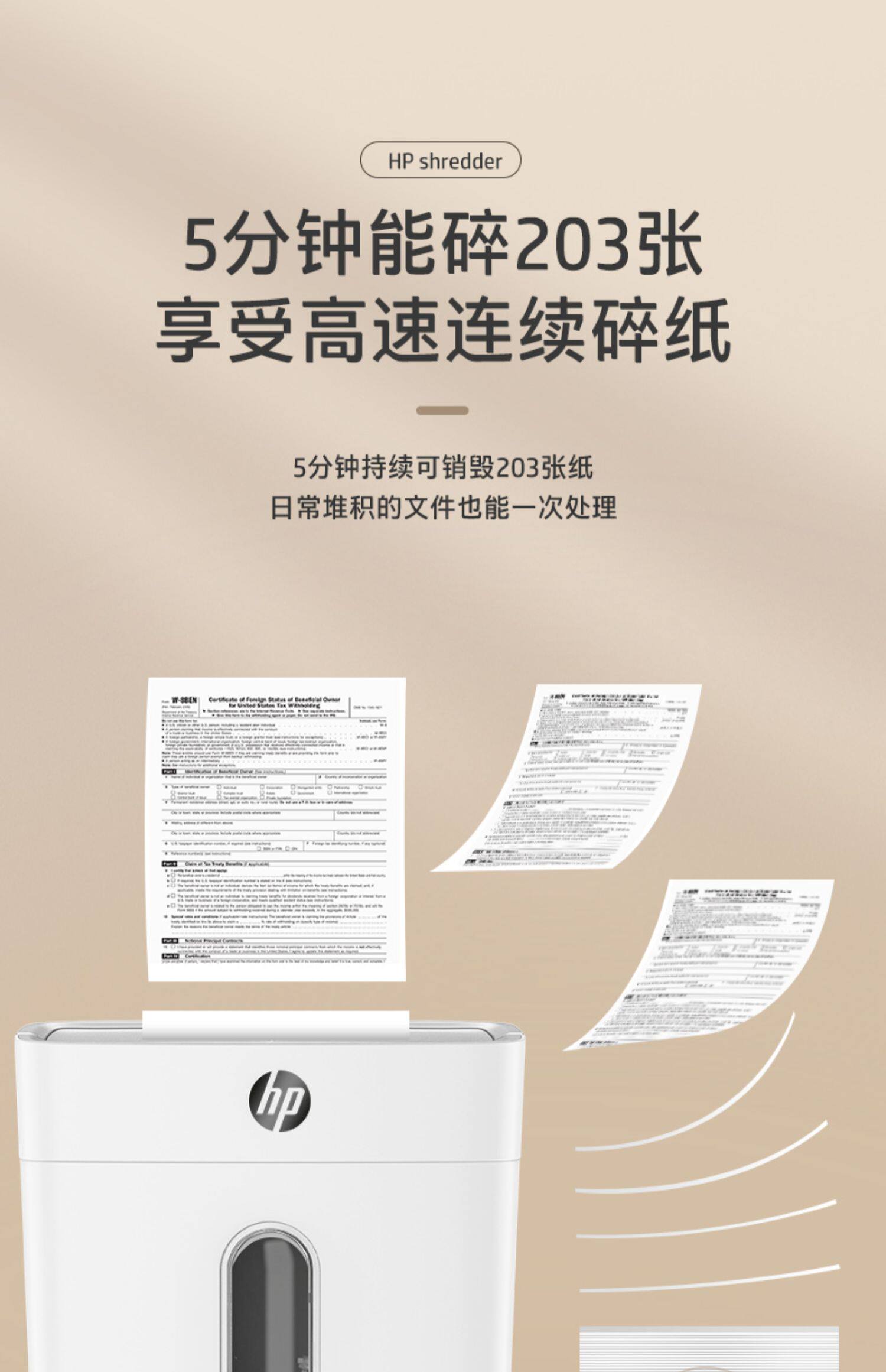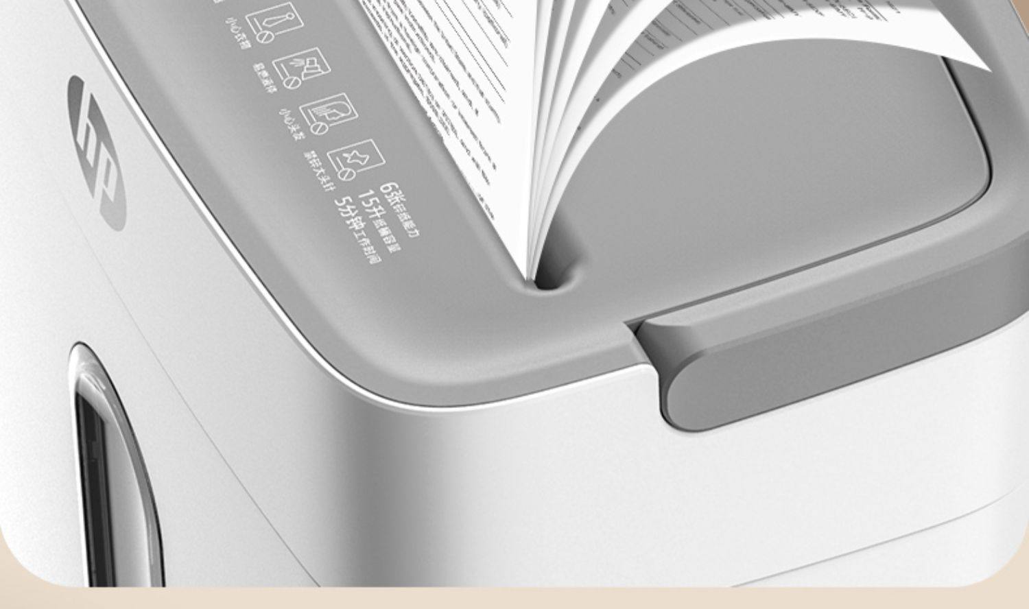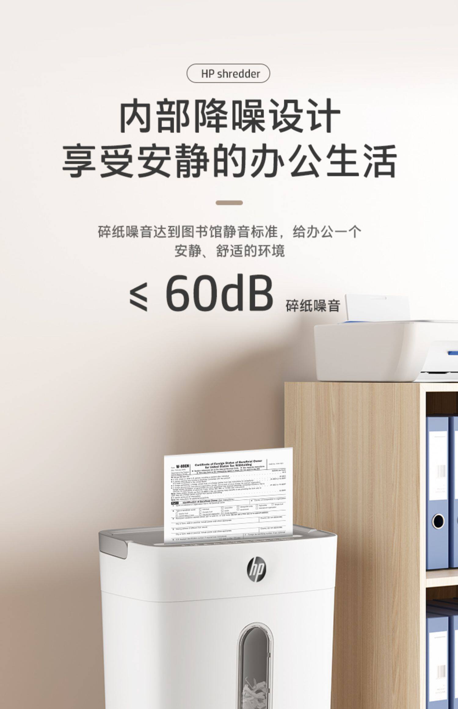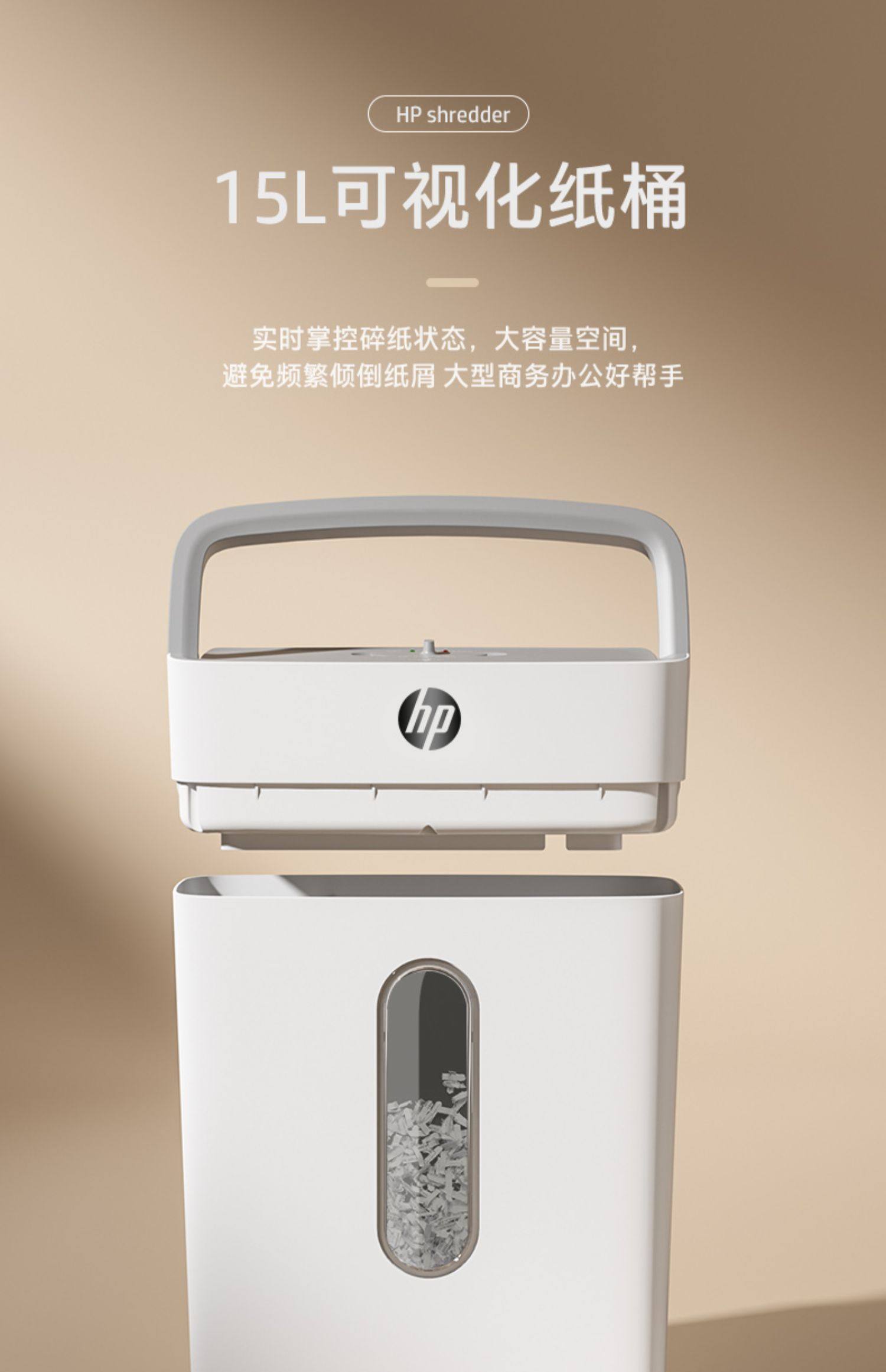 商品名称:惠普碎纸机办公室专用全自动办公家用家庭商用迷你小型粉碎机4级保密桌面纸光盘胶卷W1506CCW1505CC碎卡