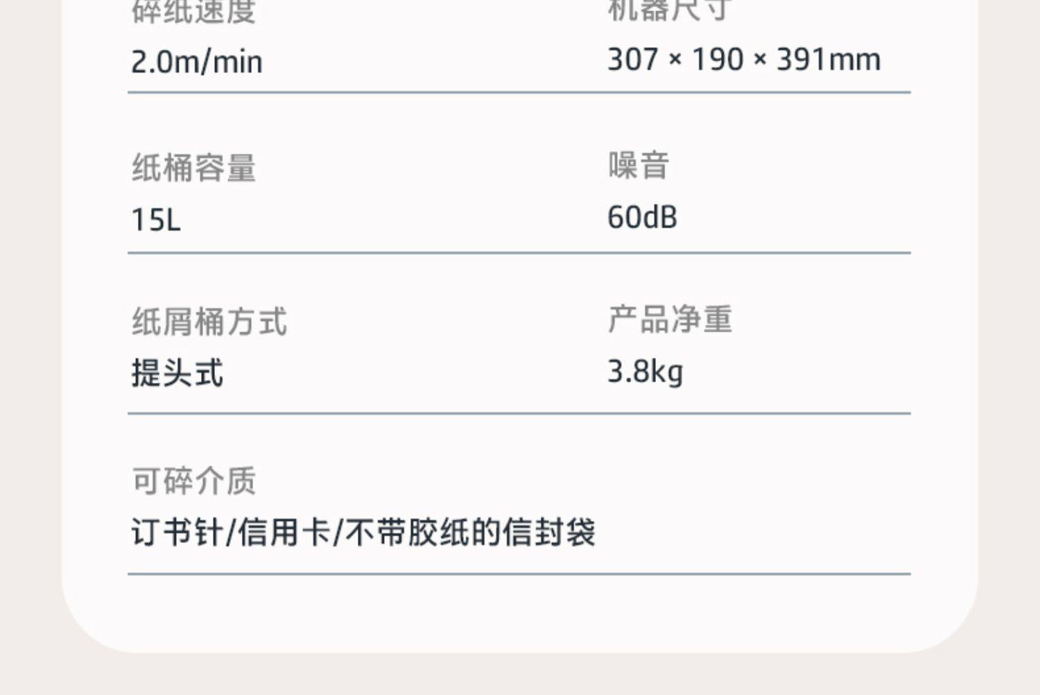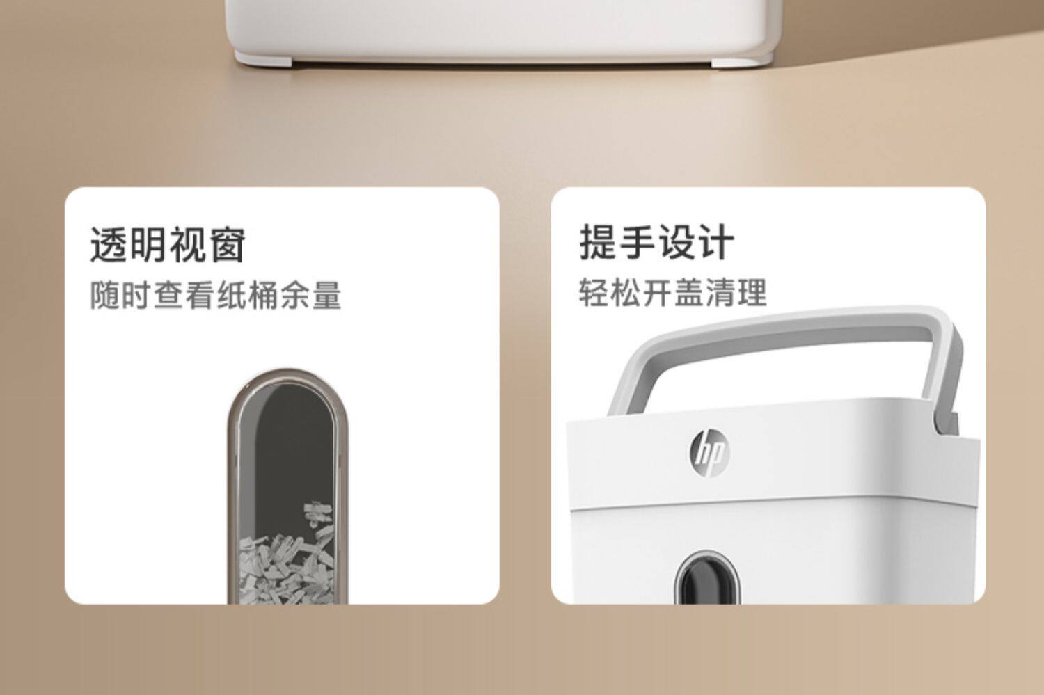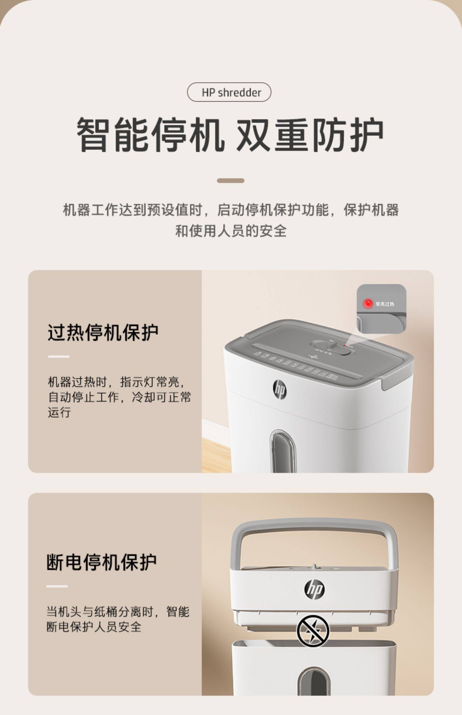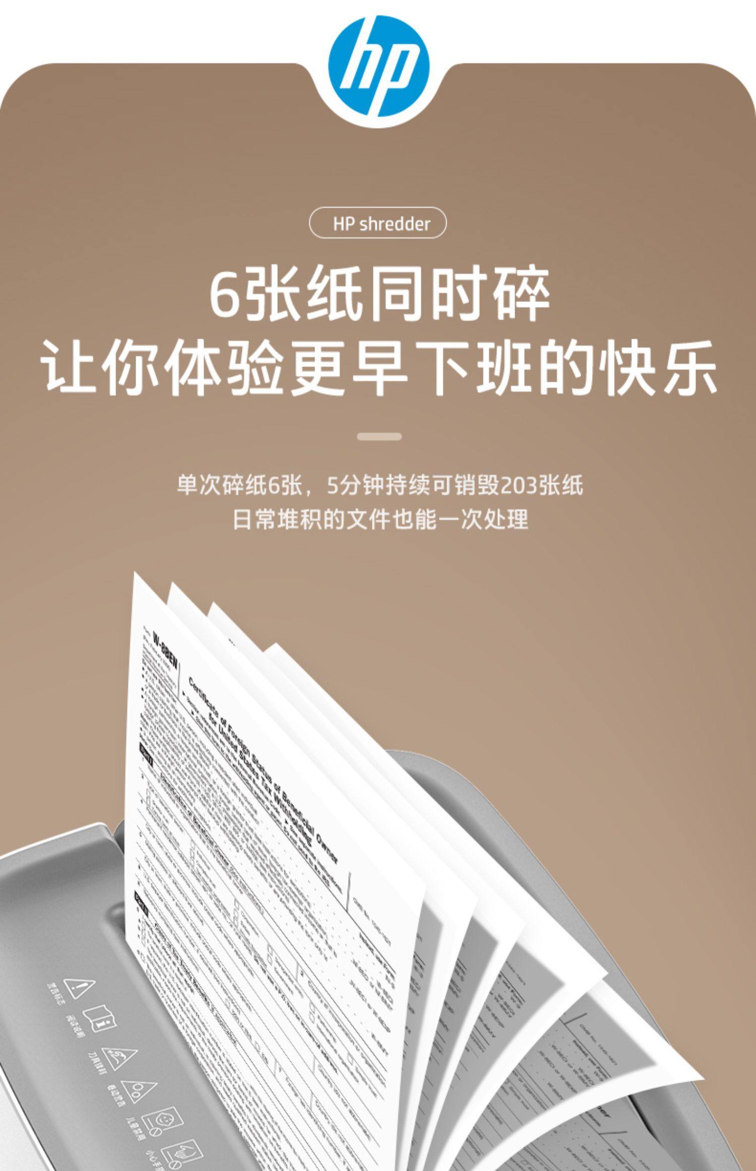 商品名称:惠普碎纸机办公室专用全自动办公家用家庭商用迷你小型粉碎机4级保密桌面纸光盘胶卷W1506CCW1505CC碎卡