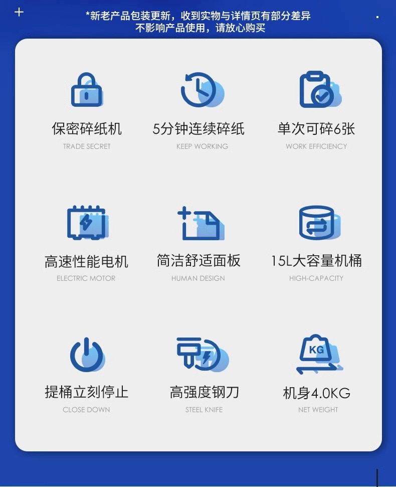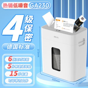 热销静音款【5分钟连碎 6张同碎 15升容量 4级保密 可碎带钉文件】GA230