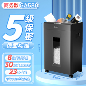 长效款【30分钟连碎 8纸同碎 23升容量 5级保密 可碎带钉文件】GA580