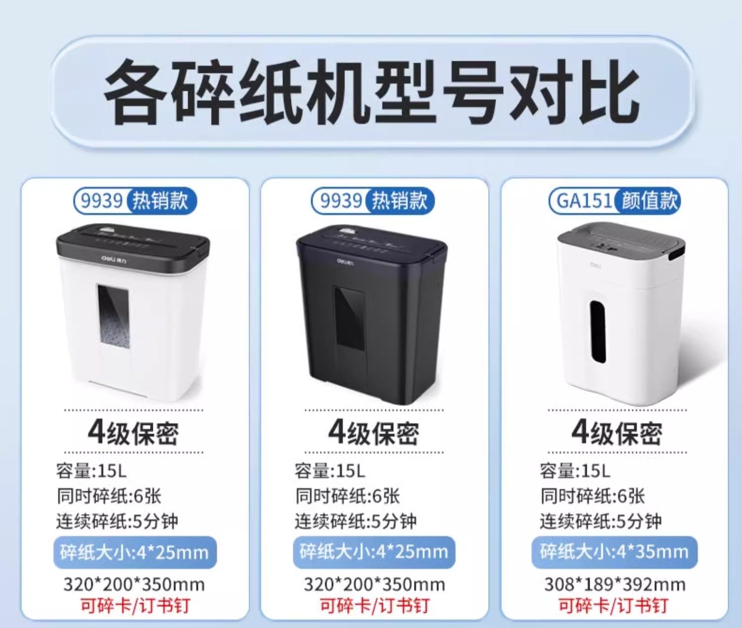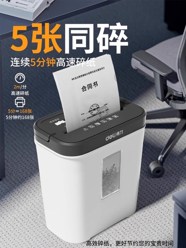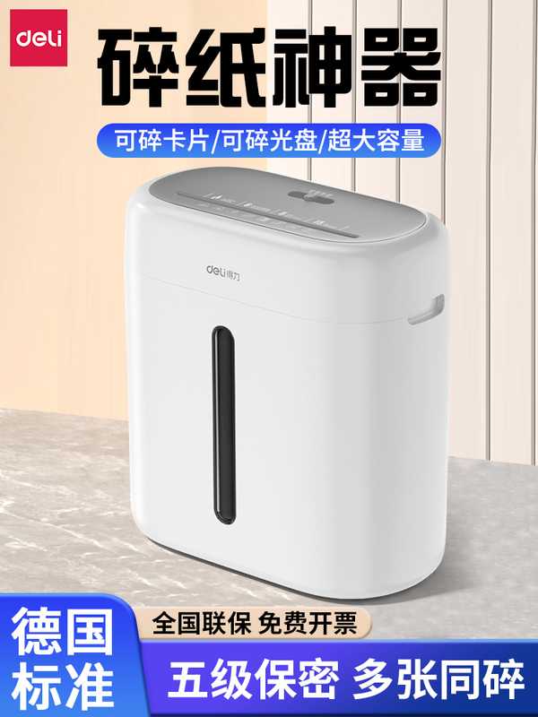 得力碎纸机办公室专用家用全自动电动大功率商用桌面纸张文件迷你小型粉碎机5级保密碾碎机光盘卡