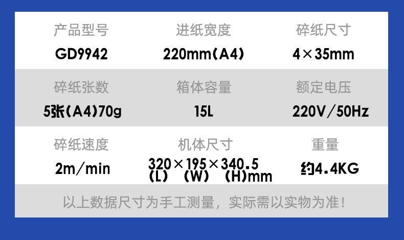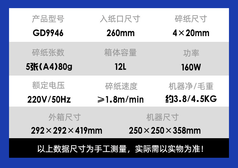 商品名称:古德9946家用小型碎纸机办公室用文件纸张5级保密便携全自动颗粒状电动大型4级迷你A4资料中型桌面粉碎机
